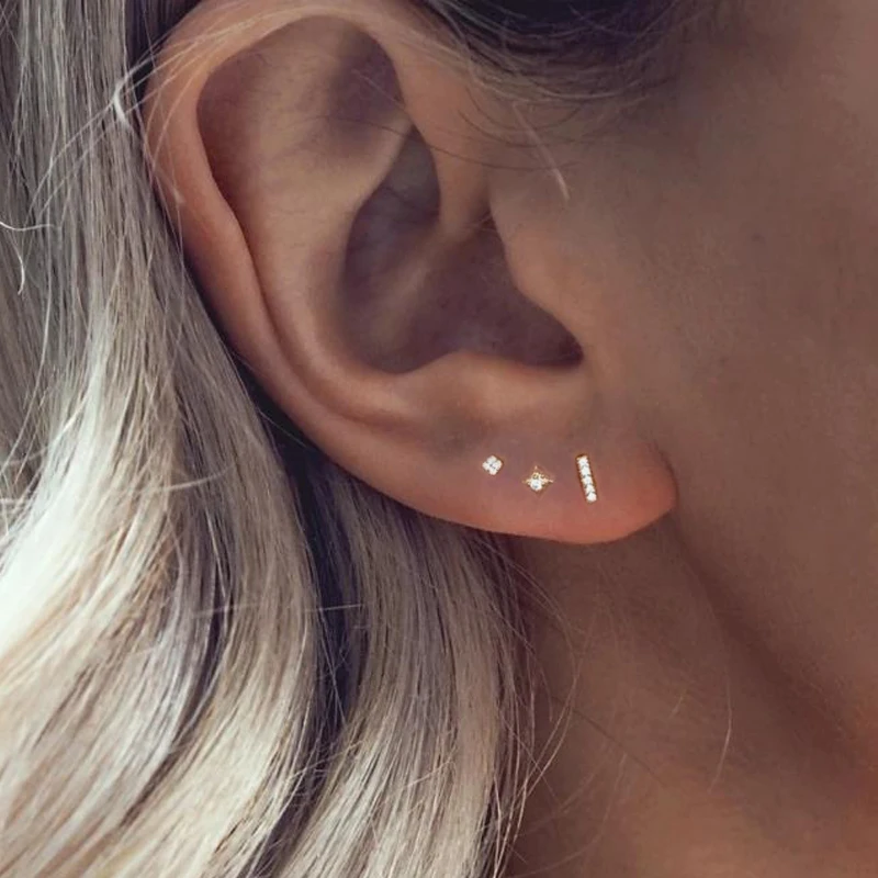 ROXI 3 шт./компл. серьги-гвоздики с кристаллами для женщин маленькие звезды квадратные серьги ювелирные изделия из стерлингового серебра 925 пробы необычные серьги для пирсинга