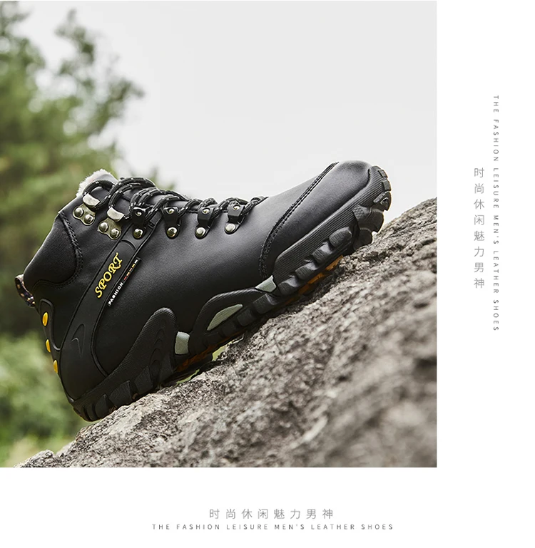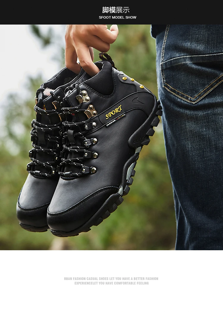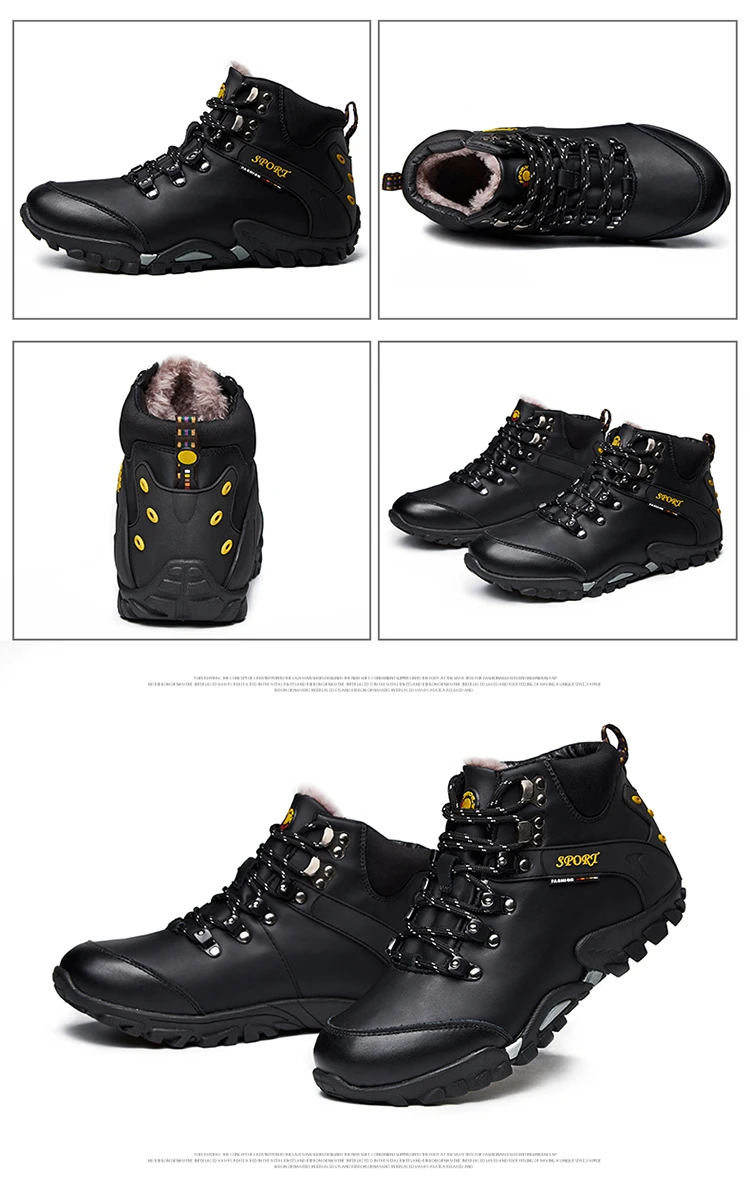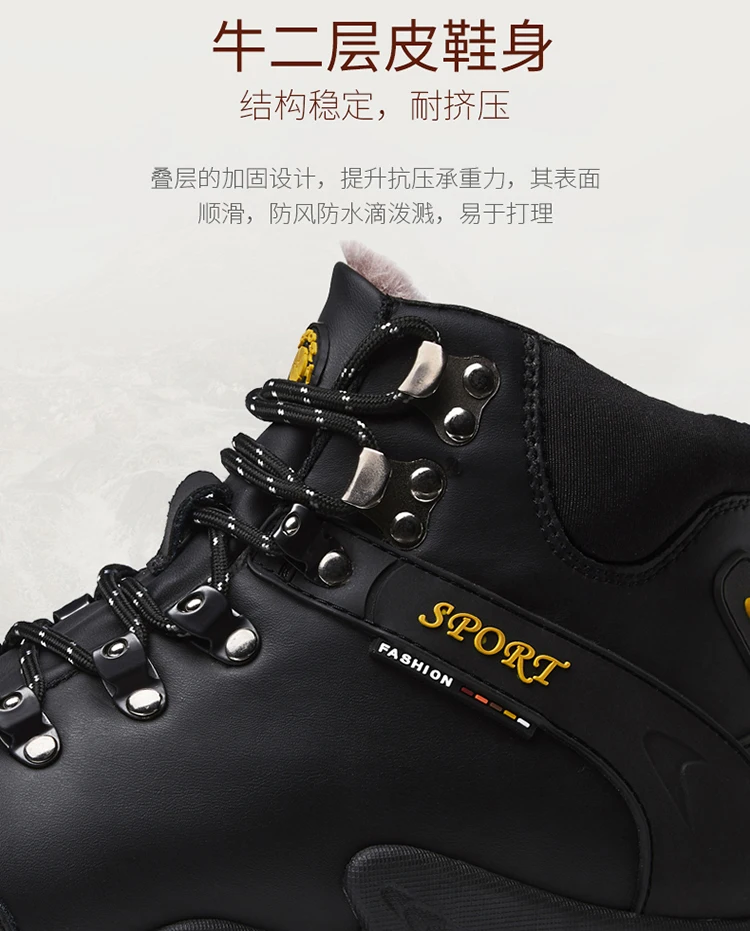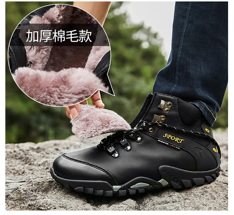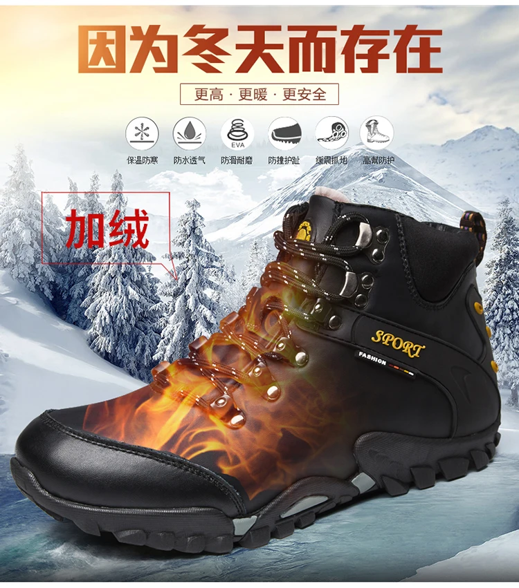 Мужские кожаные ботинки, теплые ботинки для снега, водонепроницаемы...