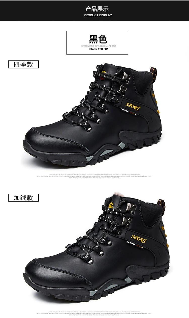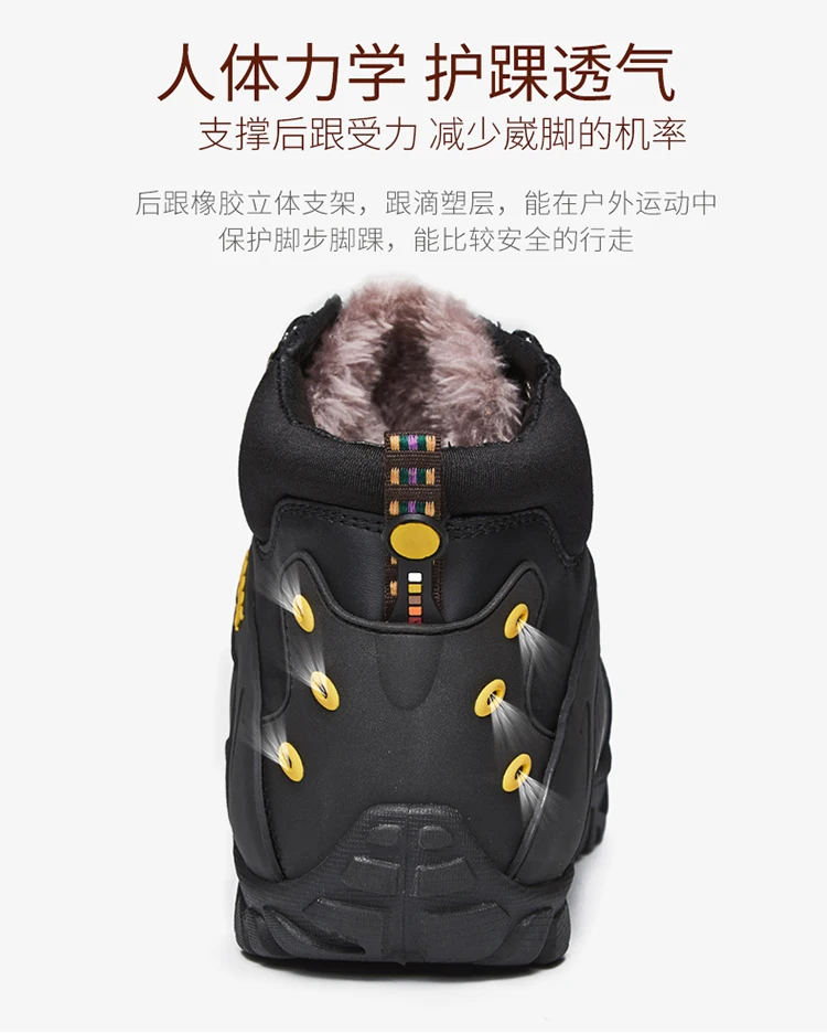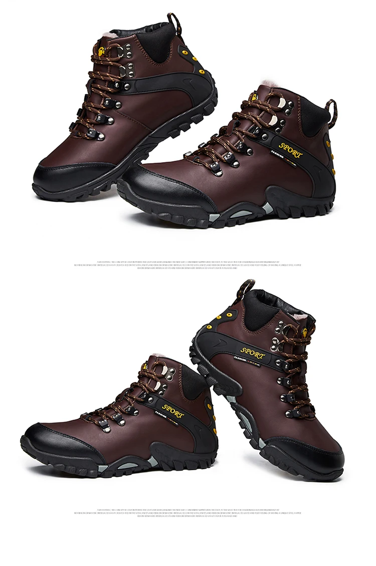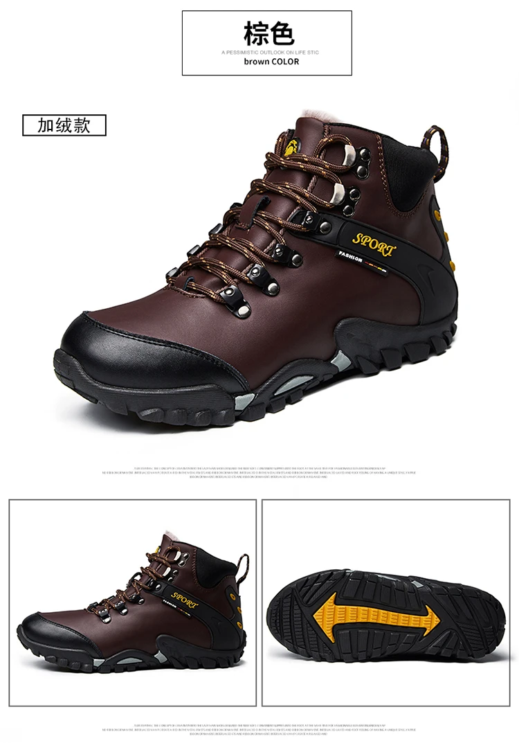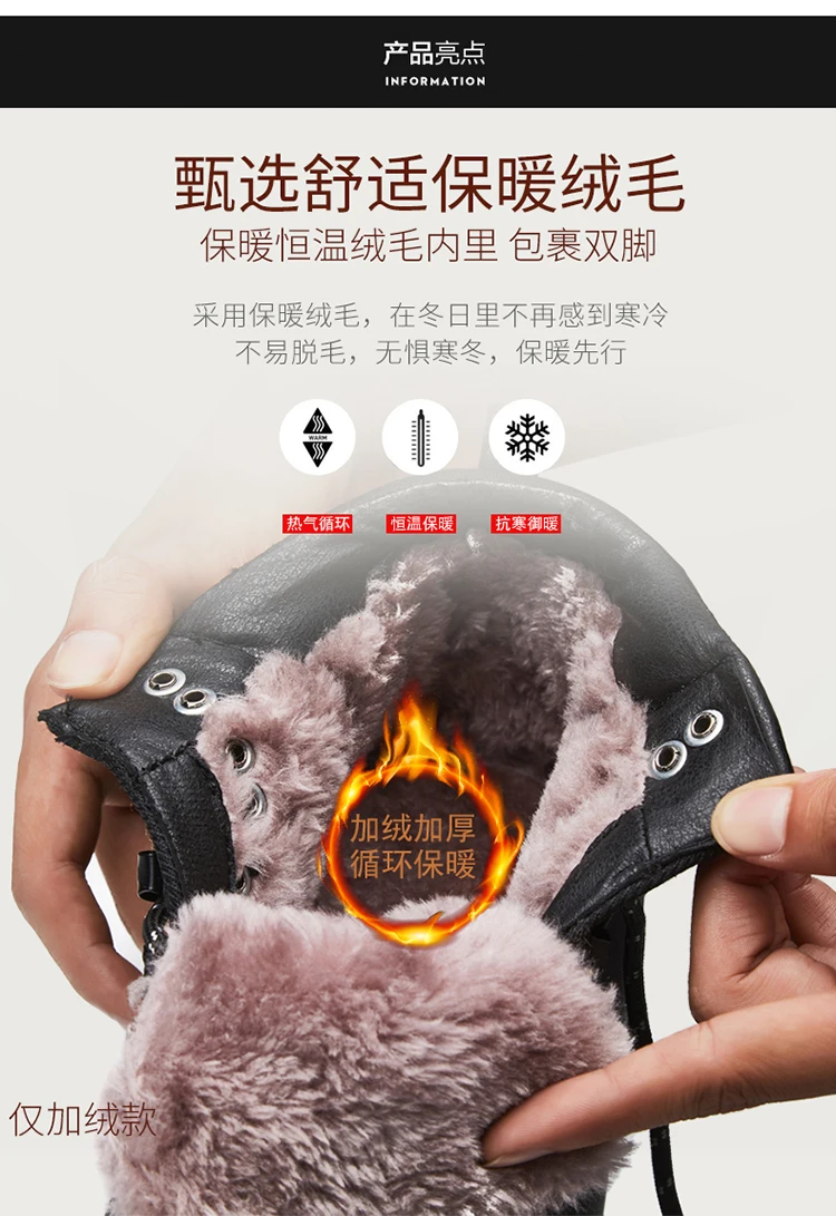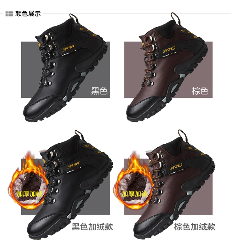 Мужские кожаные ботинки, теплые ботинки для снега, водонепроницаемы...