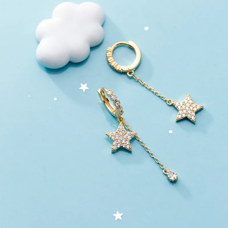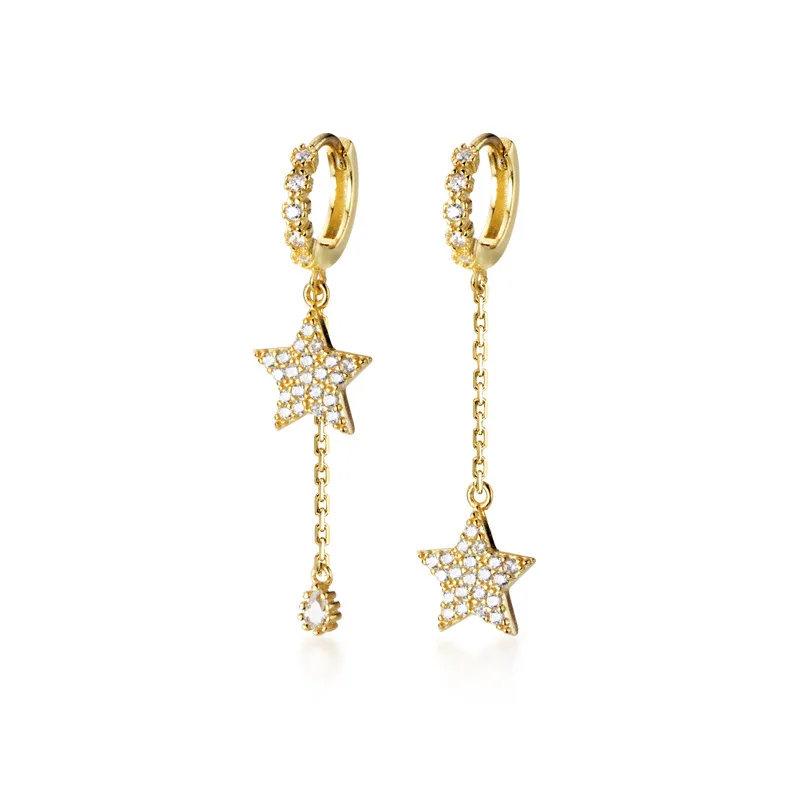 Женские серьги-капельки из серебра 925 пробы, с пятиконечной звездой