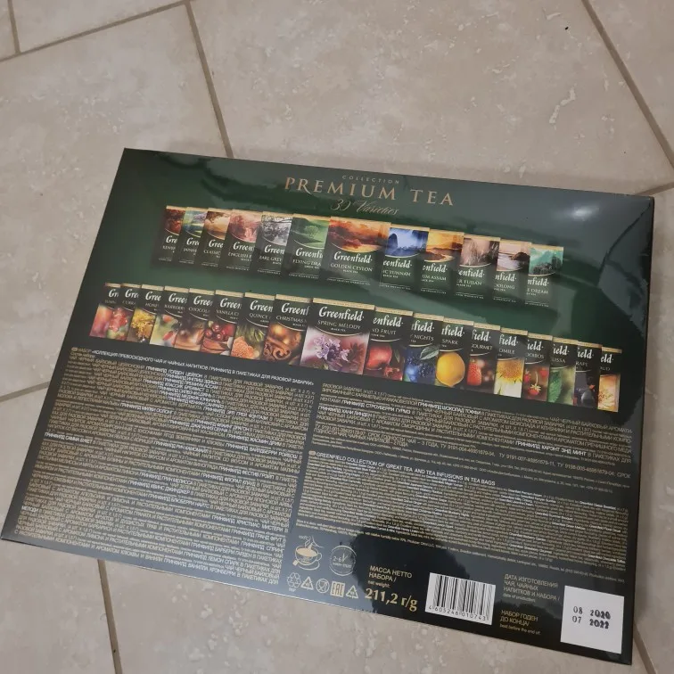 Отличный набор, любимый чай . Коробку конечно потрепало - упаковано просто в пакет, но я брала себе , не критично