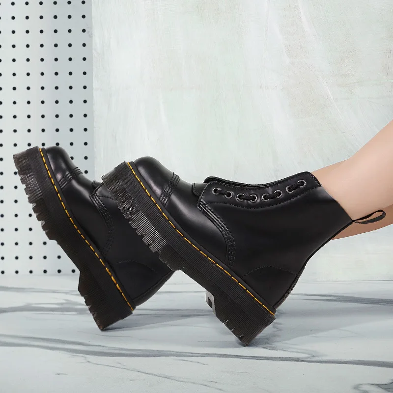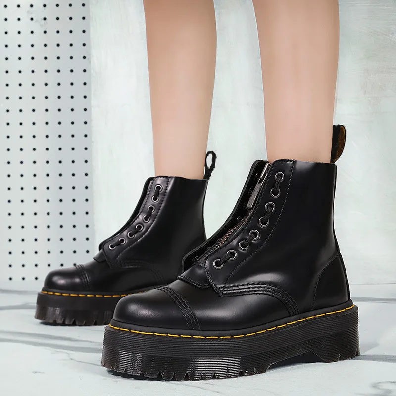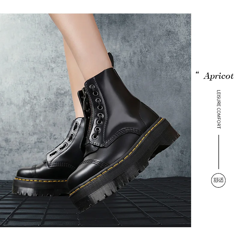 Женские ботильоны на платформе, высококачественные Ботинки Martin из натуральной кожи, британские БОТИНКИ на толстой подошве, на молнии, из воловьей кожи, на плоской подошве, женские ботинки