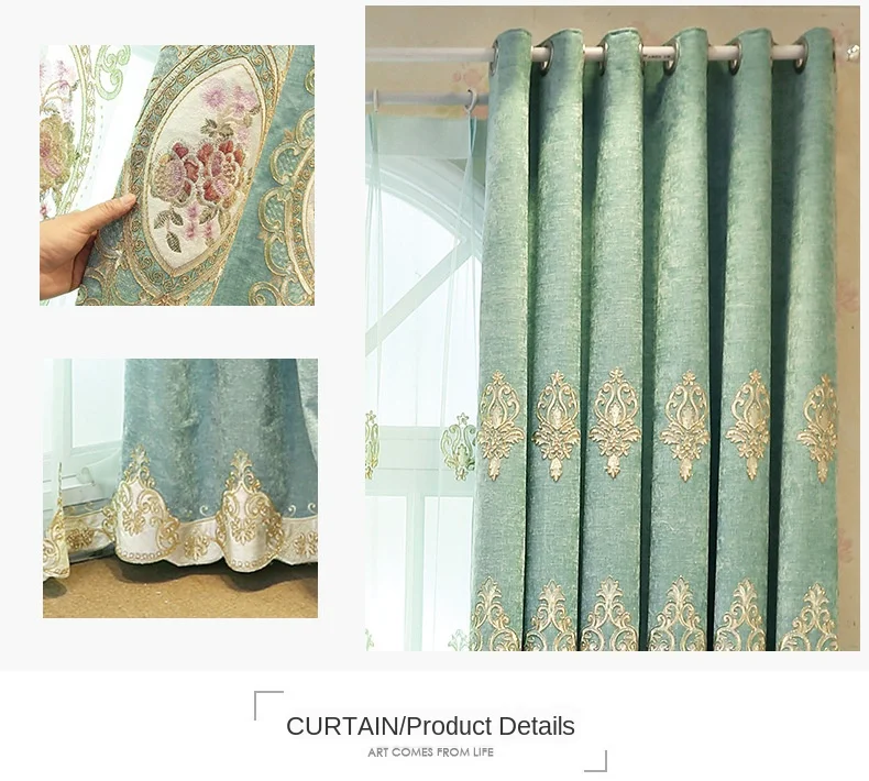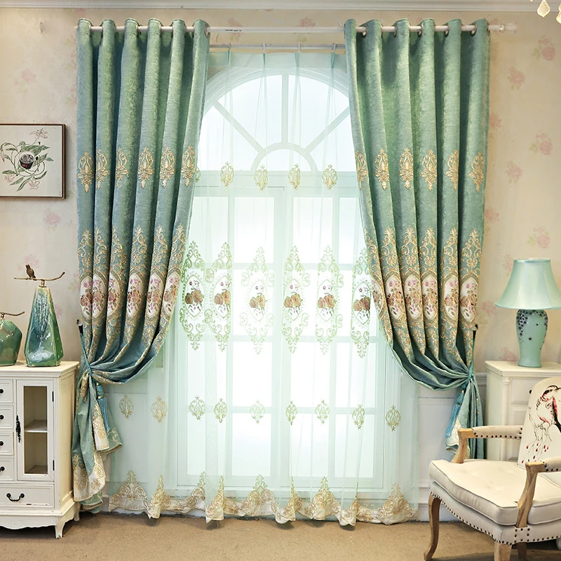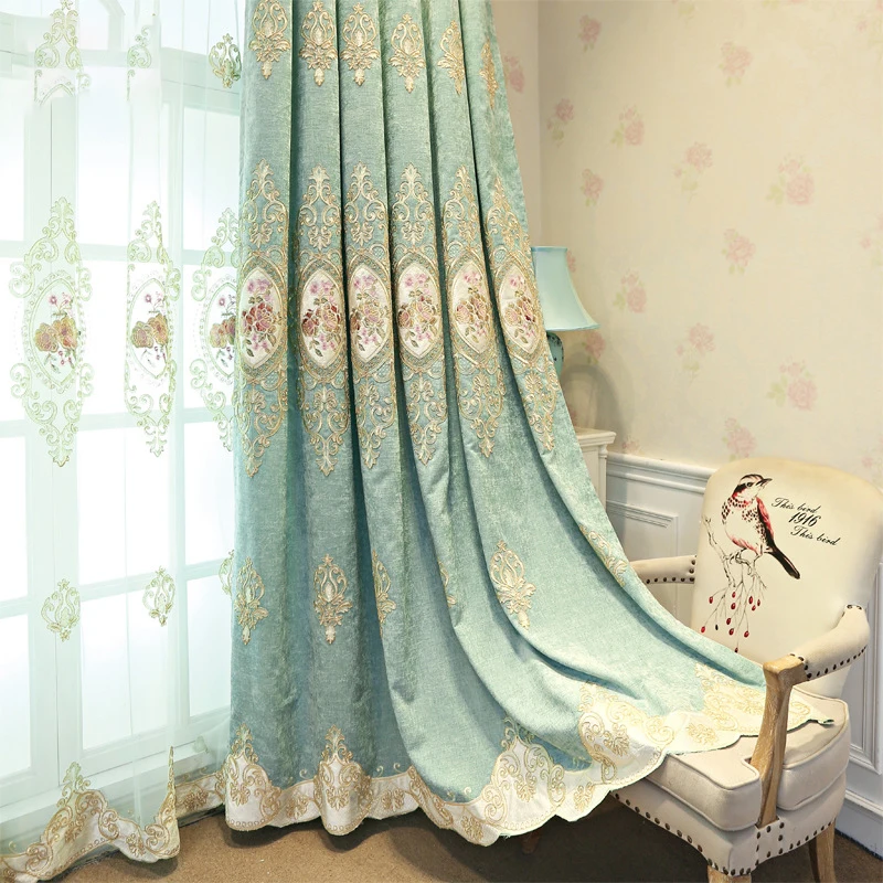 Новинка 2022 Европейская занавеска с вышивкой для гостиной спальни занавеска с отделкой зеленого цвета