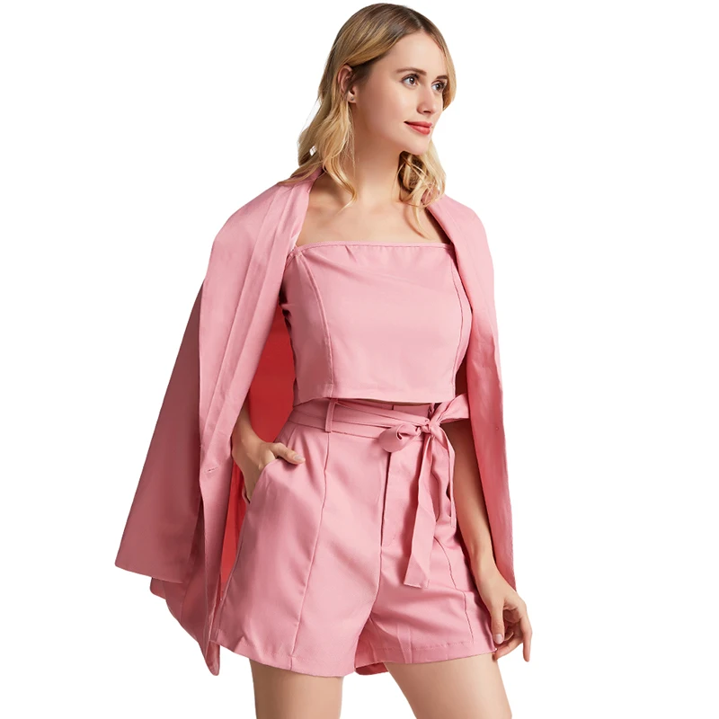 Осенний комплект из трех предметов, женский сексуальный офисный комплект из 3 предметов с вырезом лодочкой, топ и шорты, Элегантные повседневные Костюмы с длинным рукавом, блейзер