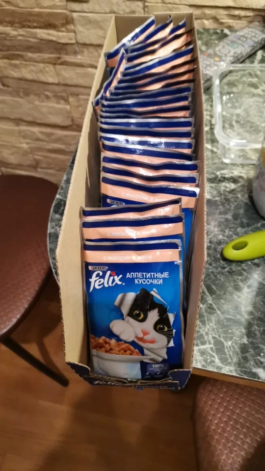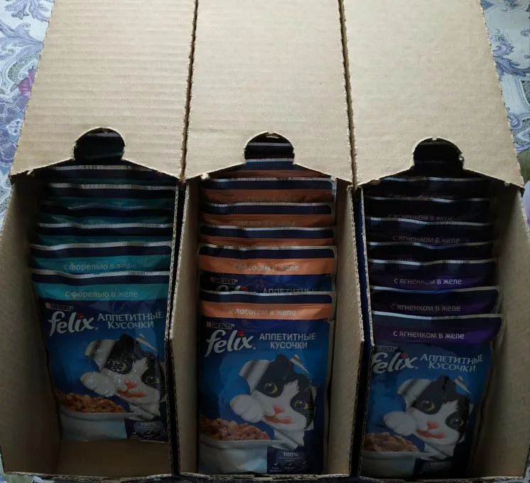 Всё просто отлично! Большое СПАСИБО магазину за оперативную отправку заказа и качественный продукт, котик очень доволен!!! Заказ пришёл через десять дней до Забайкальского края, что очень... очень... быстро. У нас в городе цены на данный корм вообще запредельные, а здесь пачка обошлась всего в 13₽, ну Я сразу и заказал четыре упаковки)) Всё пришло упаковано в отдельную коробку в полном комплекте, забирал на почте. В общем БОЛЬШОЕ СПАСИБО магазину!!!