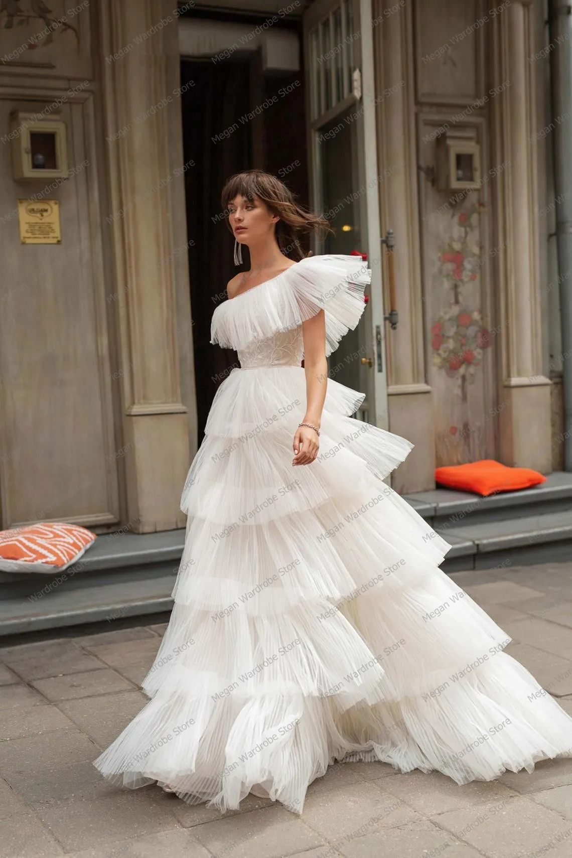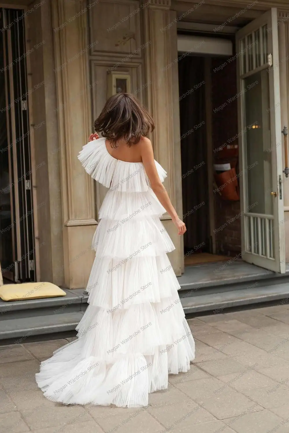 Женское ТРАПЕЦИЕВИДНОЕ ПЛАТЬЕ, белое длинное Плиссированное Платье из фатина с одним открытым плечом и аппликацией, лето 2019