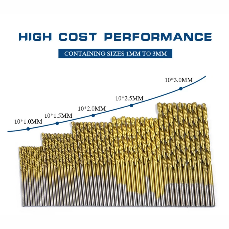 50 шт. спиральное сверло из быстрорежущей стали с титановым покрытием 11,522,53 мм высокоскоростное стальное сверло стандартный набор инструментов