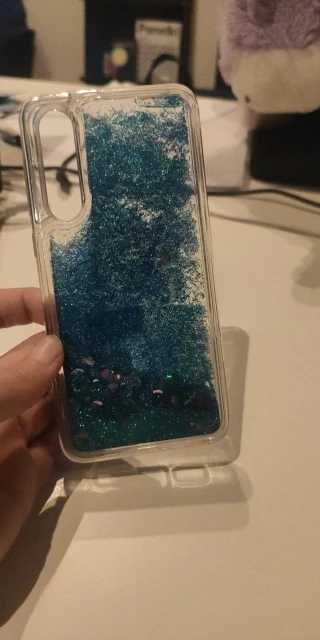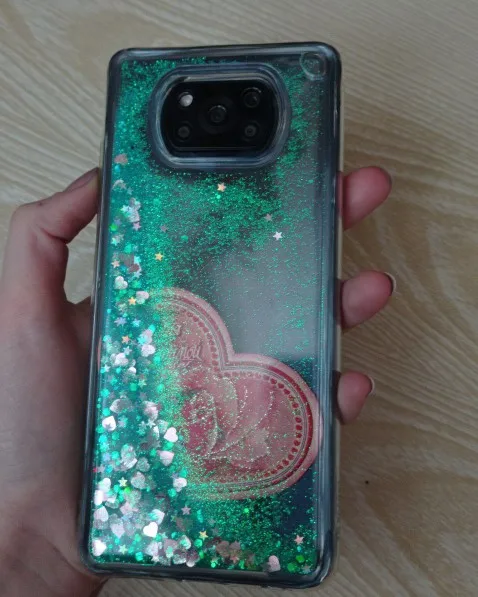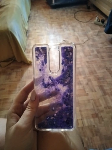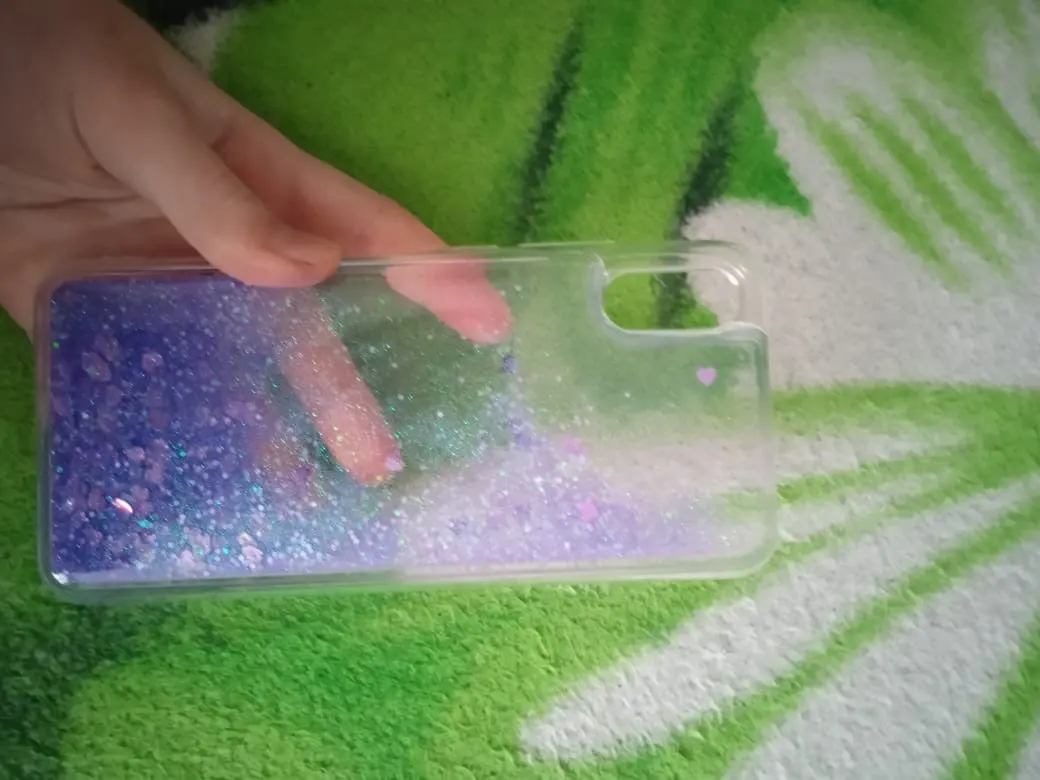 Чехол хороший, но его толщина несколько больше, чем казалось по фото. 5.2мм!!! Это при том, что сам телефон 9.5мм. Блёстки не нарисованные, а плавают в жидкости. Выглядит прикольно. Жена довольна :) Продавец молодец! Отправил быстро и упаковал 2 чехла в пенопластовую крепкую коробку.