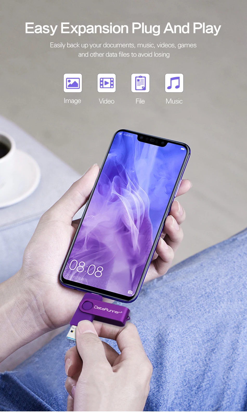 4. Дизайн 3-в-1 с портом type-c, портом micro usb и разъемом USB 3,0, удобен для передачи данных между смартфонами Android и компьютерами.
