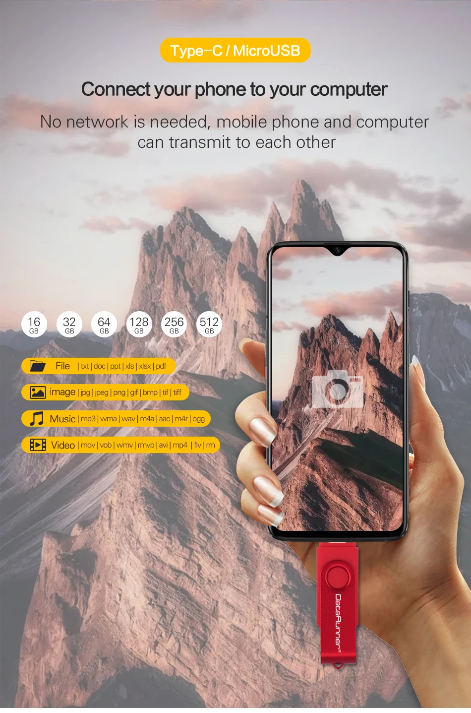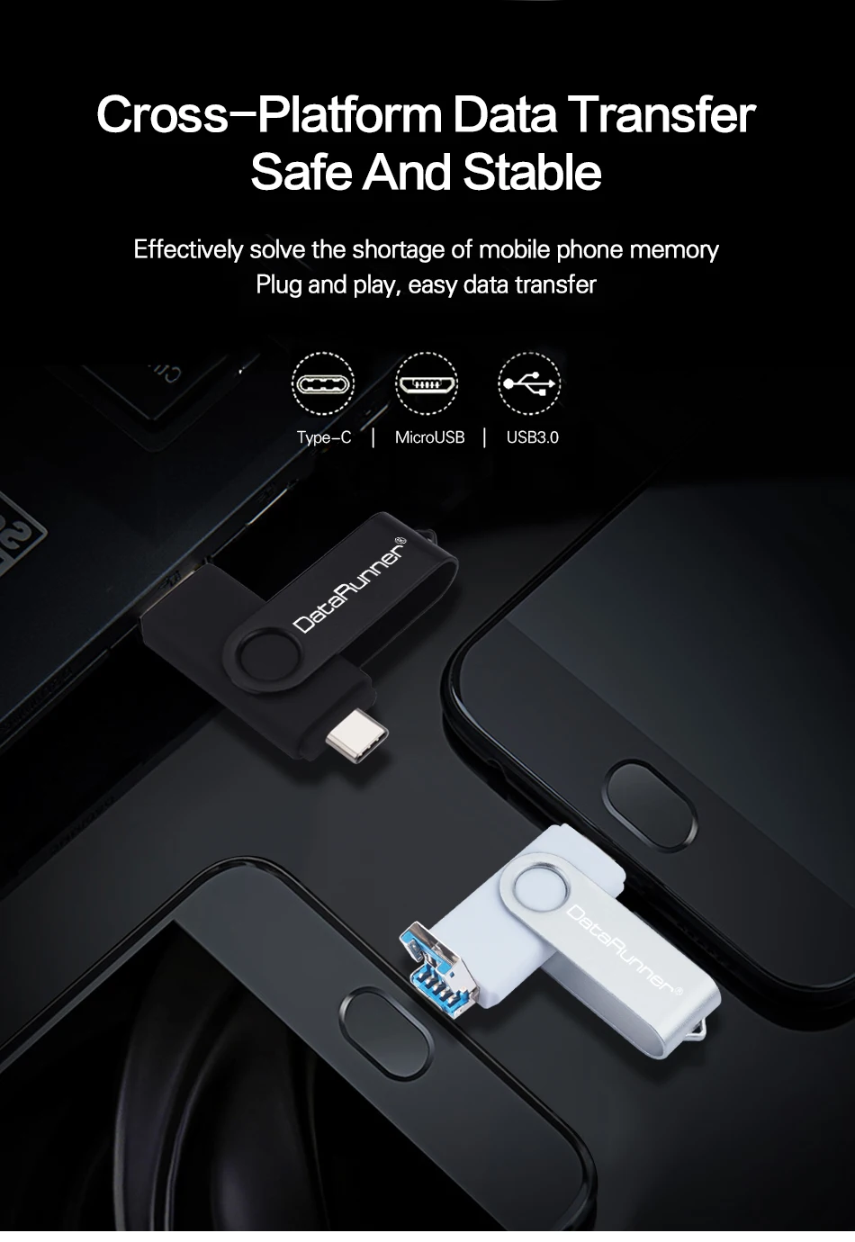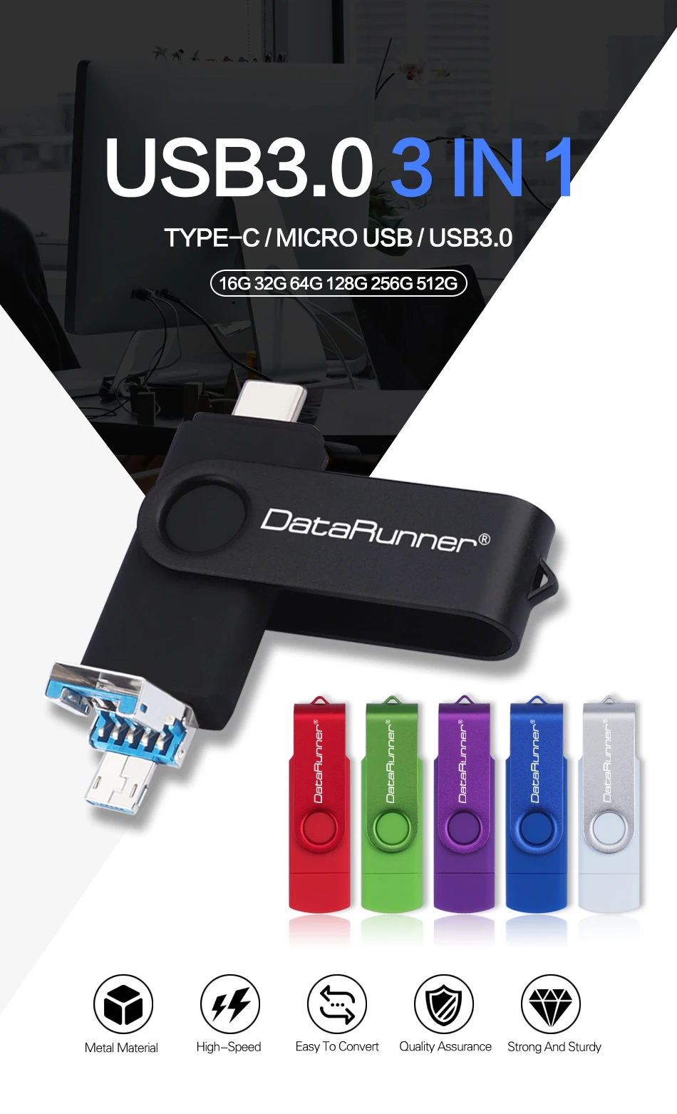 USB-флеш-накопитель DataRunner, USB 3,0, 512 ГБ, 256 ГБ, 128 ГБ, 64 ГБ, 32 ГБ, USB-накопитель для Type Cмикро USB смартфонПК