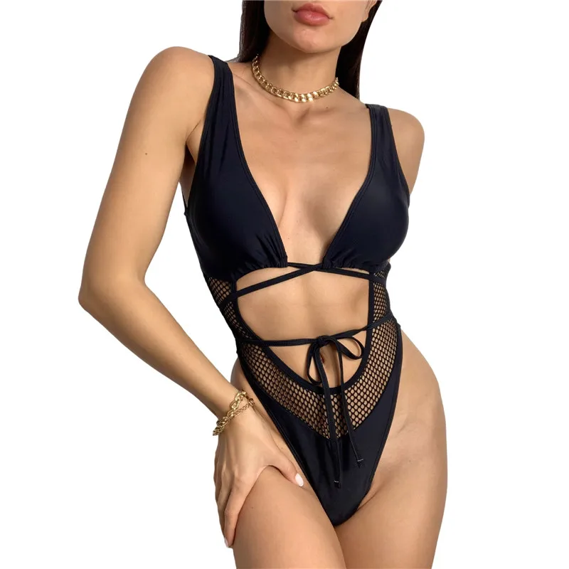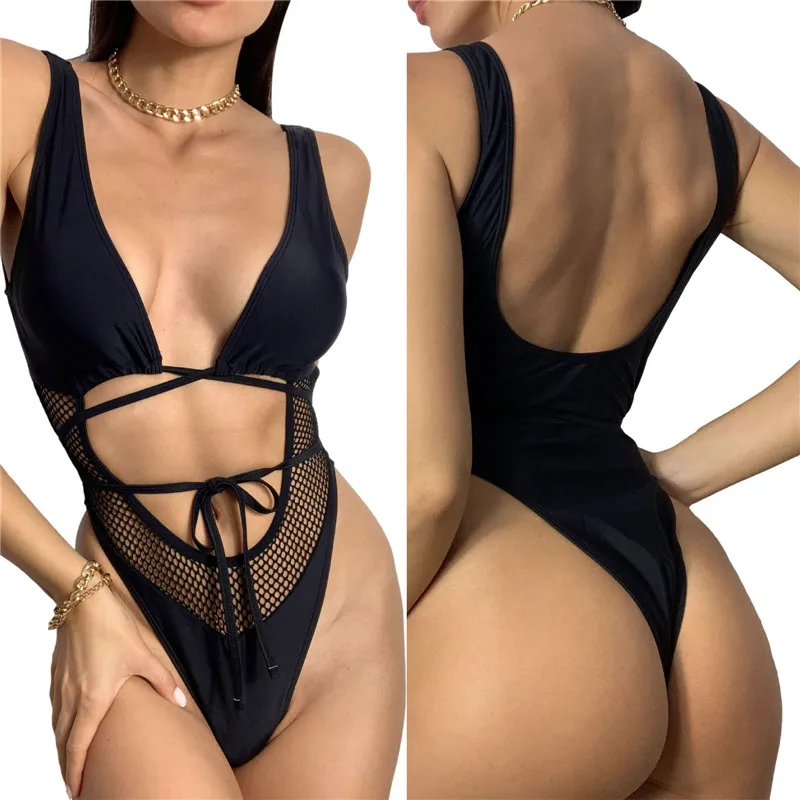 Женский слитный купальник Xingqing, монокини с V-образным вырезом, в клетку, на завязках, с открытой спиной