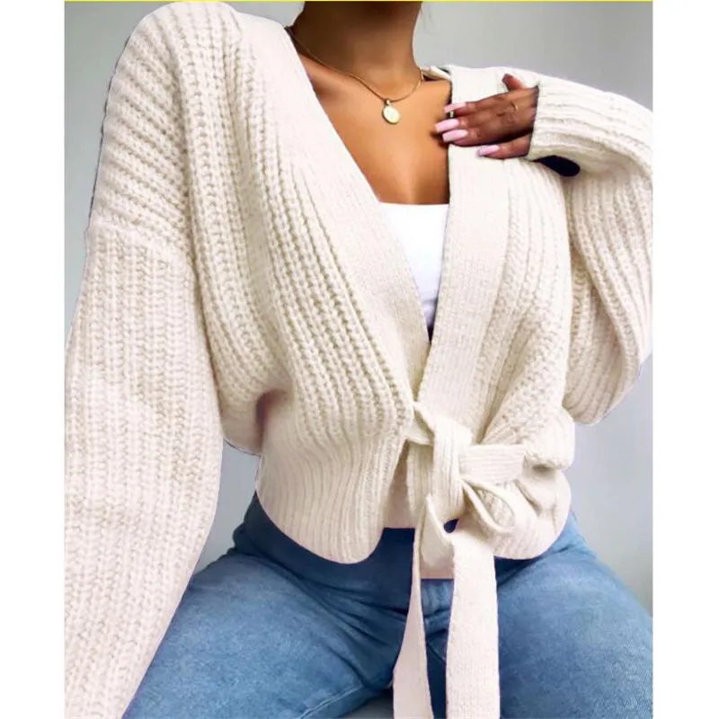 Женский свободный кардиган с V-образным вырезом, теплый плотный вязаный свитер, пальто белого, фиолетового цветов, осень 2021
