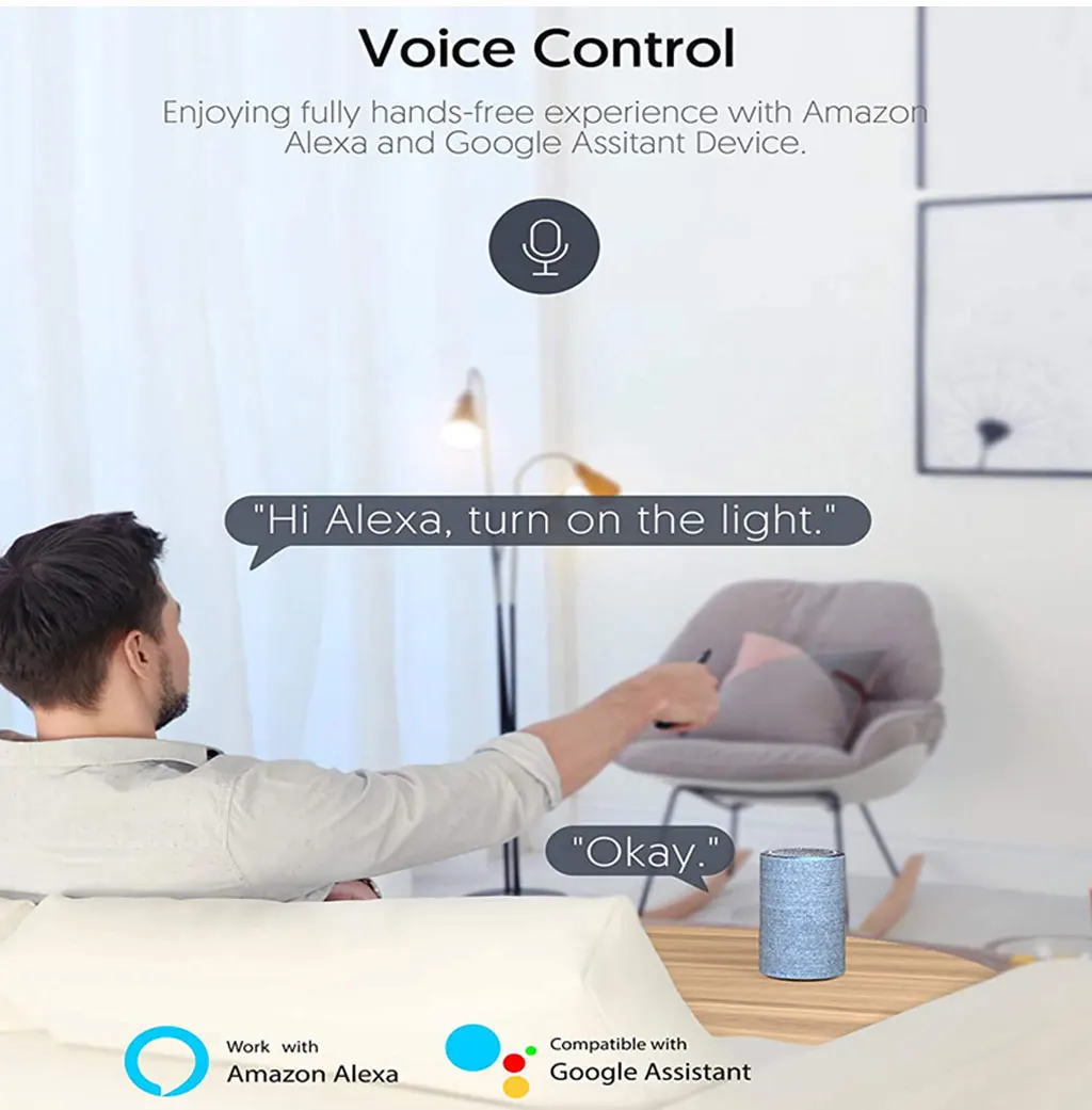 Этот продукт совместим с Amazon Alexa. Вы можете попросить Alexa управлять устройством с помощью следующих голосовых команд.Опробуйте эти фразы ( {deviceName} должно быть имя вашего устройства):“Alexa, включите {deviceName}”“Alexa, выключите {deviceName}”“Alexa, schalte Ger?tename ein”“Alexa, schalte Ger?tename aus”Также вы можете попросить Google Home управлять устройством с помощью следующих голосовых команд.«Эй, гуглейн, включите {deviceName}»«ОК, google, выключите {deviceName}»