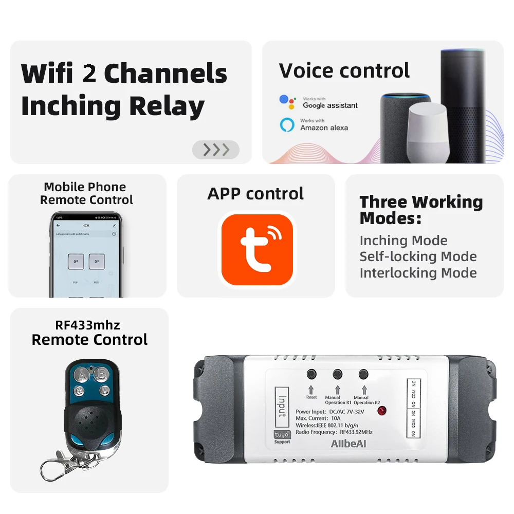 【APP пульт дистанционного управленияВы можете управлять подключенным бытовым прибором в Tuya или smart life APP в любом месте и в любое время. Например, светильник, электрический чайник, электрическая рисоварка, электрический занавес и т. д.【 RF433 управление】Модуль WIFI поддерживает частоту RF433, и вы можете управлять модулем WIFI с помощью пульта дистанционного управления RF433mhz.【Управление для мобильного телефонаКогда вы выходите на улицу или дома, вы можете управлять устройством в вашем смартфоне с помощью мобильной сети 4G или WIFI(Примечание: маршрутизатор должен быть в сети, а модуль WIFI должен поддерживать близкое расстояние с маршрутизатором)【Голосовое управление 】Совместим с Alexa и Google Assistant, вы можете использовать Голосовое управление, чтобы включить/выключить подключенные бытовые приборы.【Share Control】Одно устройство может управлять несколькими телефонами, вы можете поделиться wifi модулем с вашим fam【Групповое управлениеОдин телефон может управлять несколькими смарт-устройствами. Вы можете добавить модуль wifi и другие смарт-устройства в группу, а затем включить/выключить все смарт-устройства одновременно.