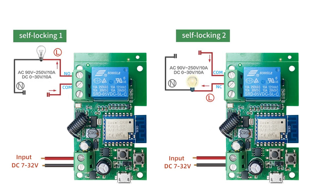Новая версия 1 канала и 2 канала реле имеют внешние интерфейсы, которые могут быть использованы для подключения к кнопочным переключателям.