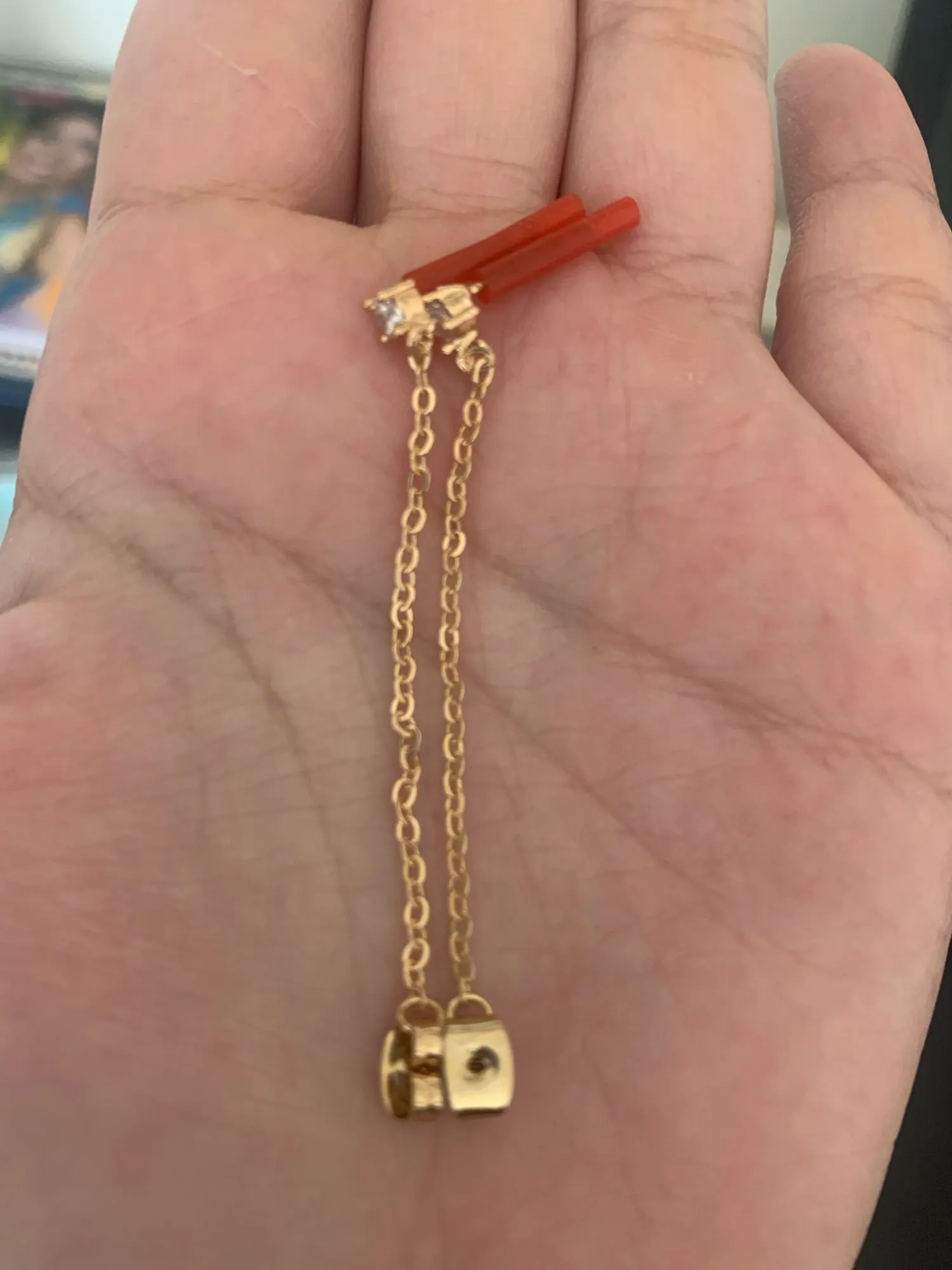 Красивые серьги. Только золото, которое считается другим, немного отличается от изображения! Но другие красивые и очень хорошо упакованы. Буду использовать их тоже! С цепочкой поставляется с защитой для части, которая будет в ухо! Было очень хорошо, потому что не поврежденные Серьги при доставке!