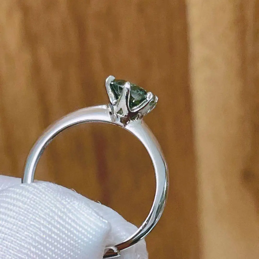 Кольцо женское из серебра настоящий Муассанит пробы, с зеленым драгоценным камнем 1-2 карата