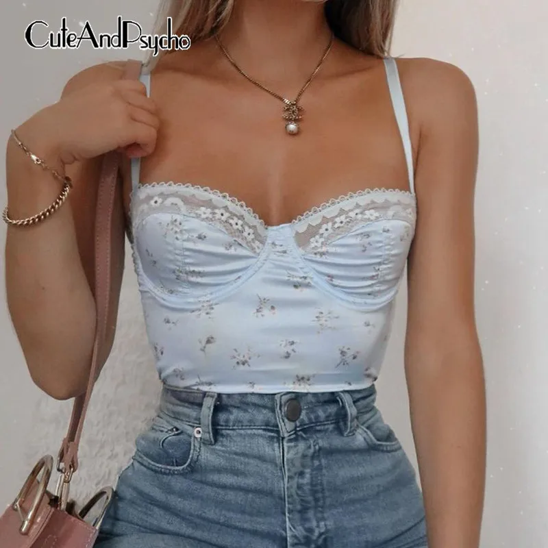 Y2K эстетические милые цветочные топы Женский с кружевной отделкой ...