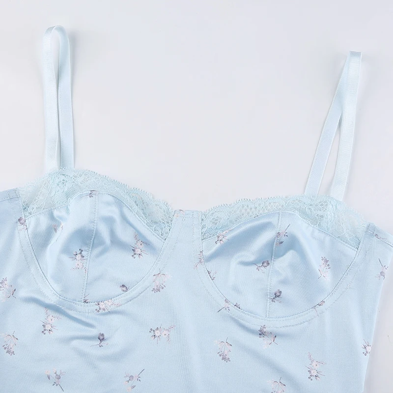 IAMSURE, кружевная отделка, цветочный принт, голубой бюстье, Camiso...