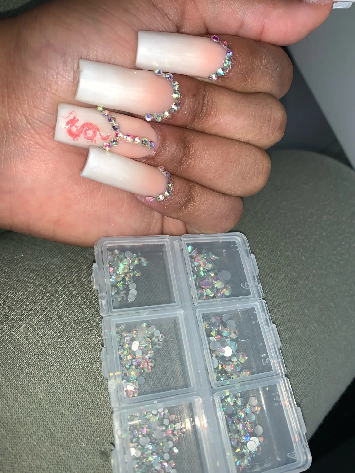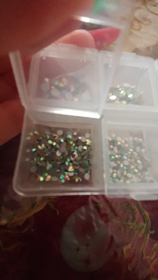 Стразы хорошие, но некоторые очень крупные и в коробочке их маловато, на картинке больше