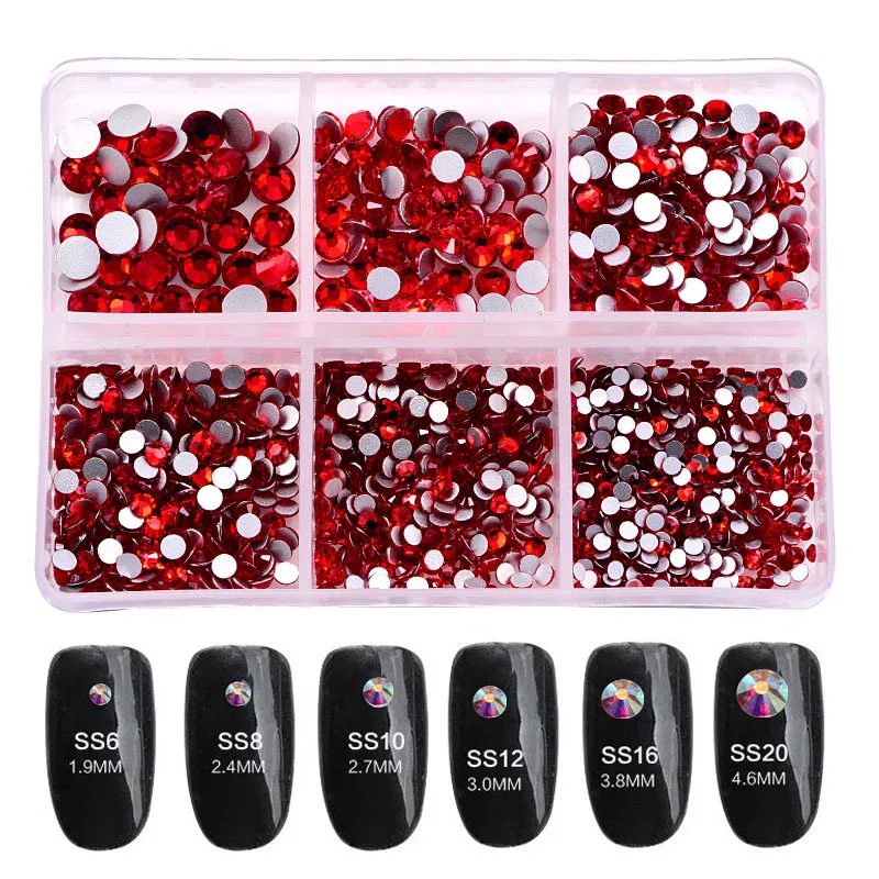 1 коробка, стразы с кристаллами для дизайна ногтей, золотистые, серебристые, прозрачные, все цвета, с плоским дном, Смешанная форма, DIY дизайн ногтей, 3D украшение в 6 ячеек