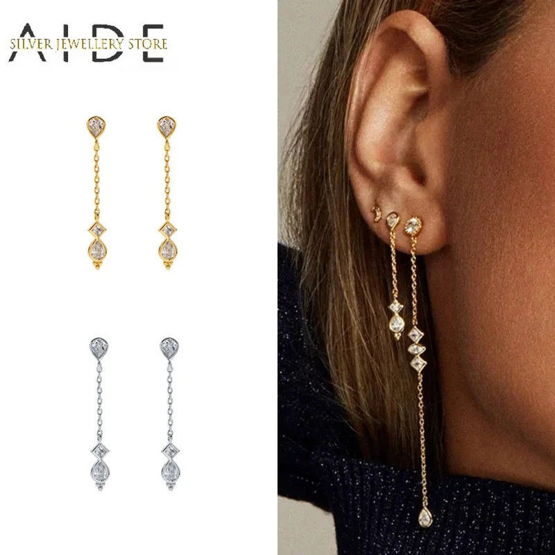 Женские Висячие серьги AIDE Minimalism с длинной цепочкой, геометрические Висячие серьги, вечерние, свадебные, серебряные, 925 пробы, ювелирное изделие