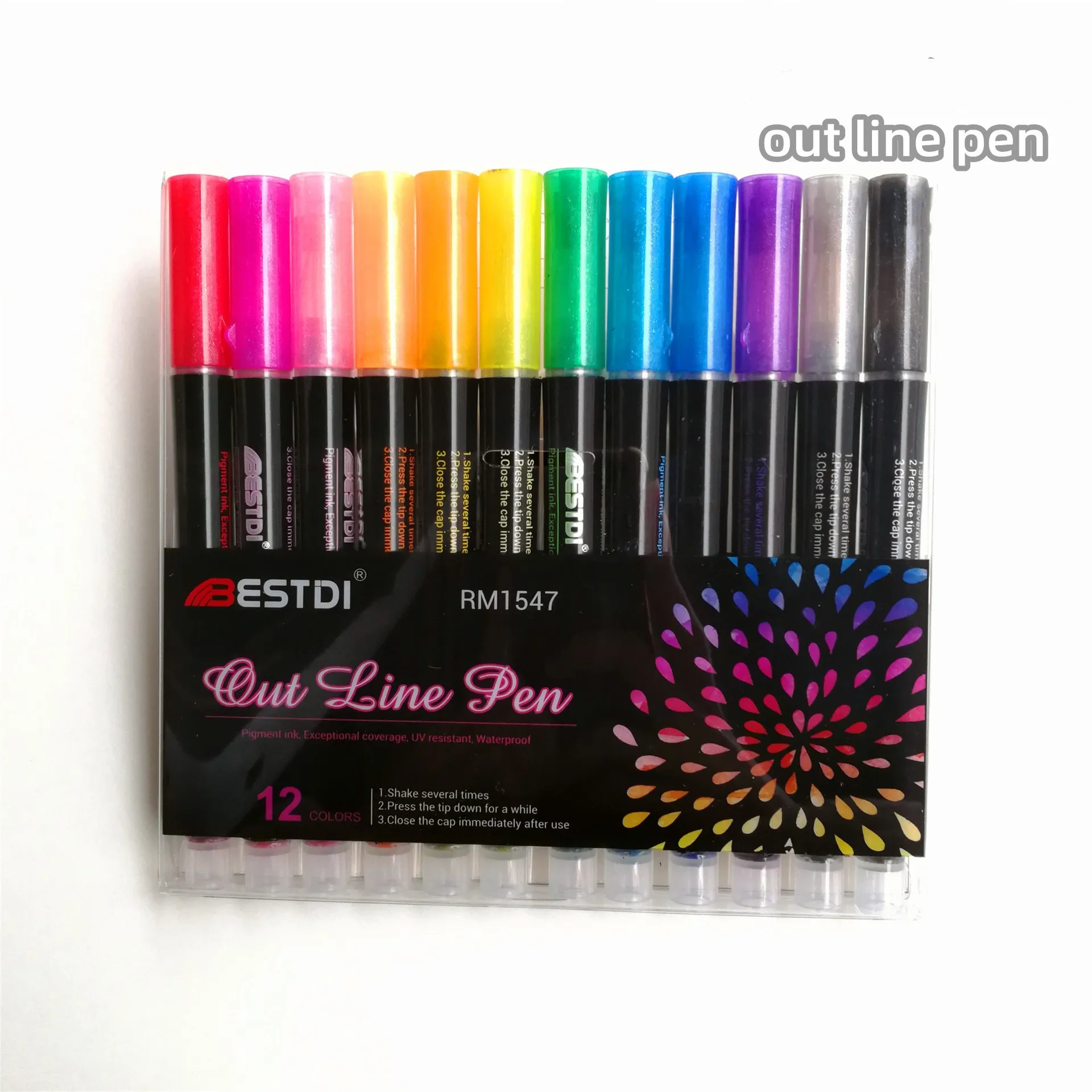 12 Цветов маркер моющиеся ручка для рисования двойная линия контурная ручка металлического цвета волшебный маркер, фломастер для товары для рукоделия