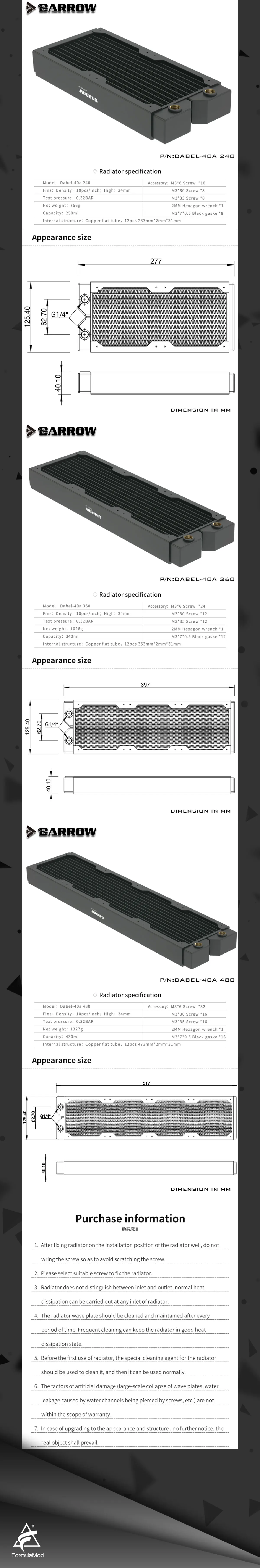Медный радиатор Barrow толщиной 40 мм, подходит для вентиляторов 120 мм, аксессуары для водяного охлаждения ПК, 240
