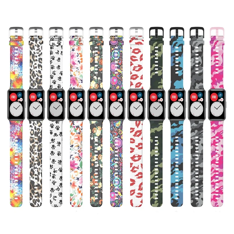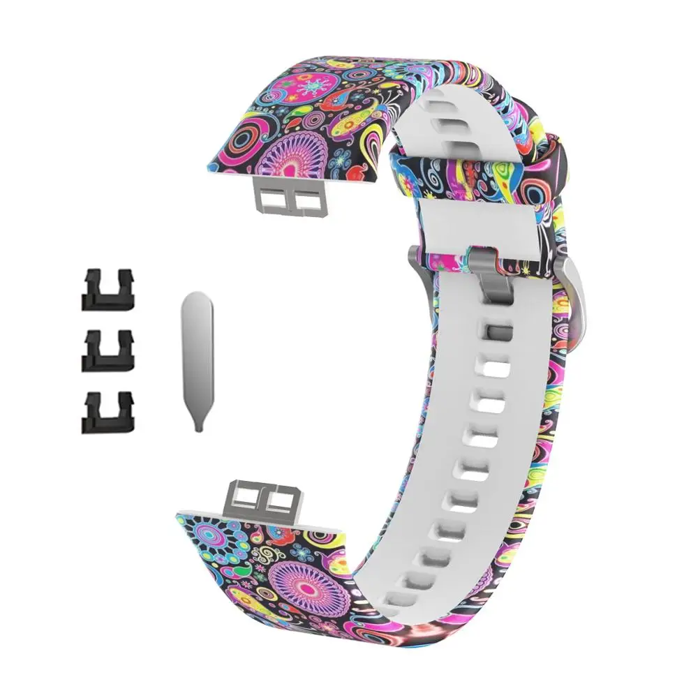 Резиновый ремешок для часов Huawei, подходит для часов высокого качества с цветочным принтом, сменный спортивный браслет, умный браслет, аксессуары для браслетов