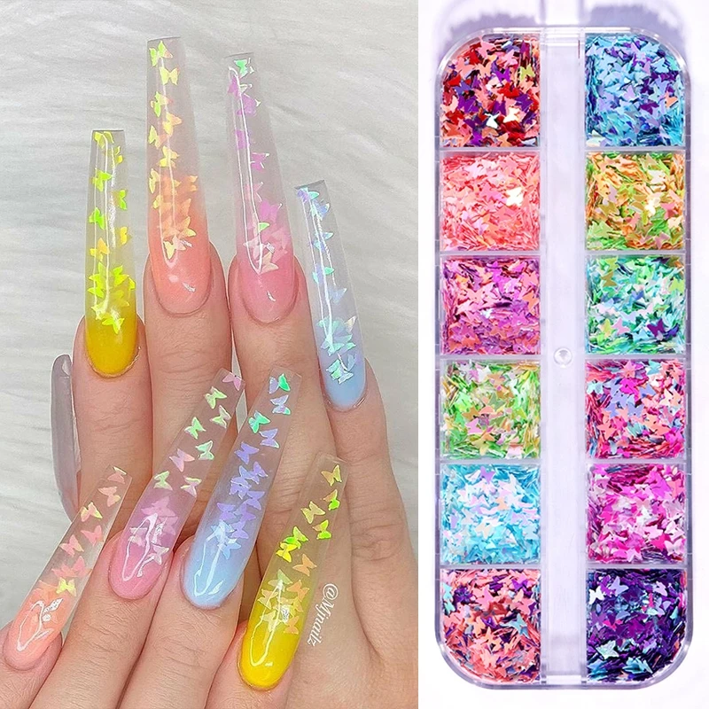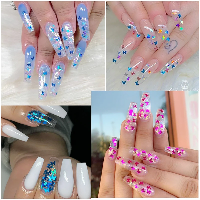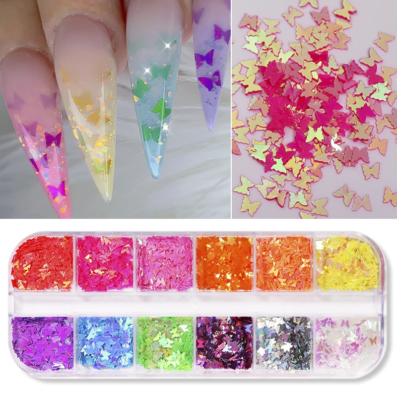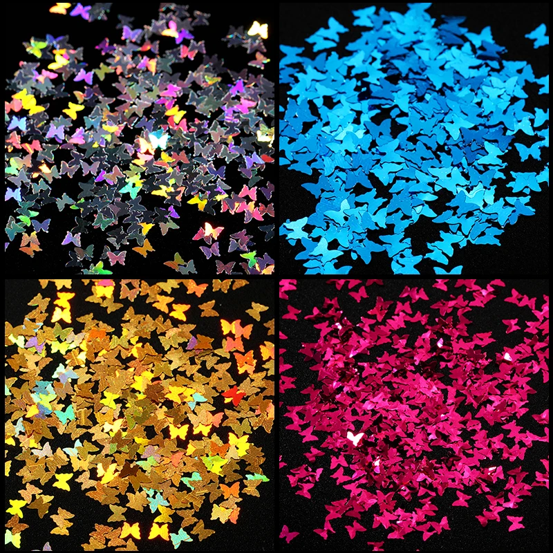 Зеркальные Блестки для ногтей в виде бабочки, пайетки смешанных цветов, голографический блеск для ногтей, 3D хлопья, ломтики, блестящие аксессуары для дизайна ногтей
