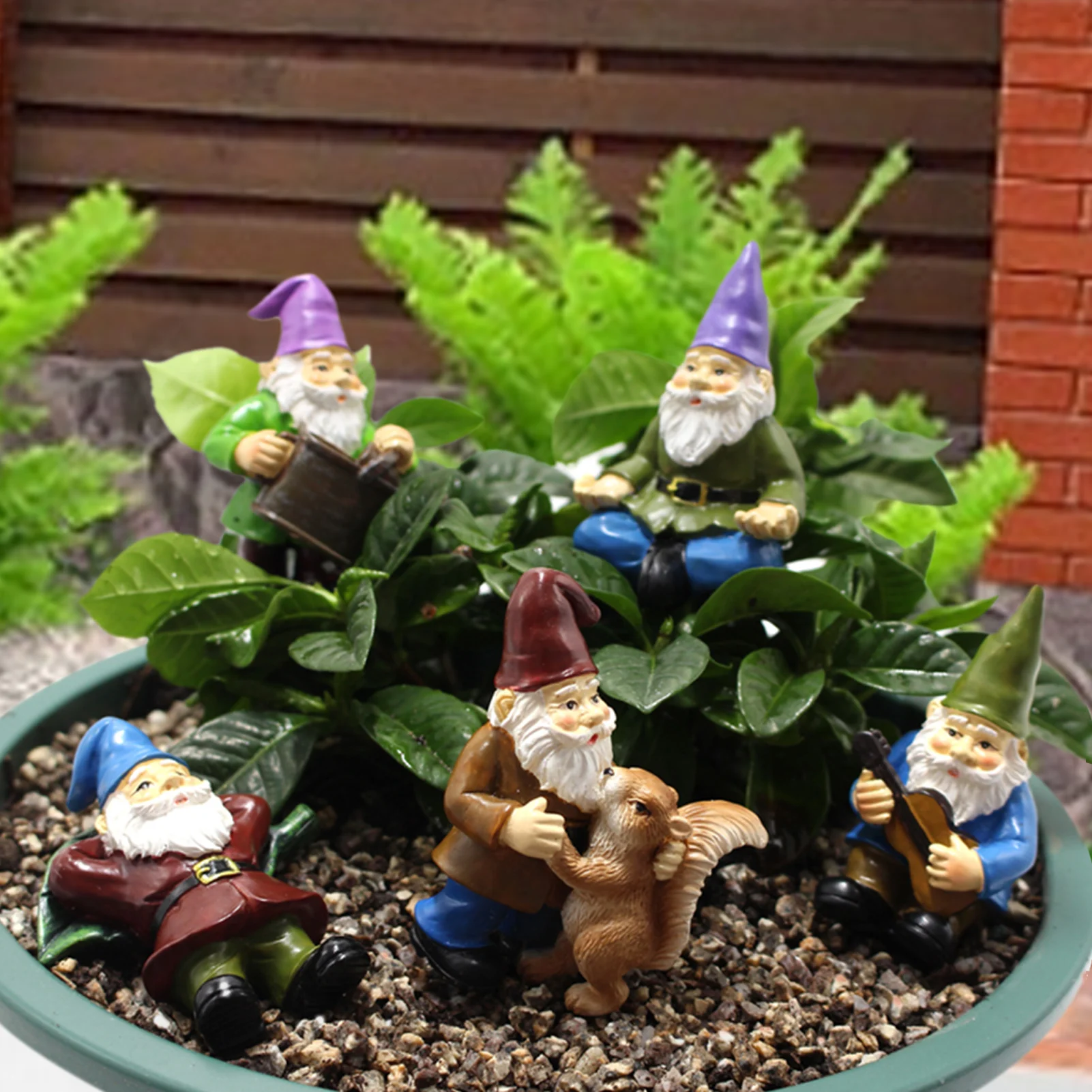 Миниатюрные садовые гномы 5 шт., Симпатичные Мини-фигурки карликов, цветочный горшок, украшения для газона, сада, орнамент, полимерные принадлежности