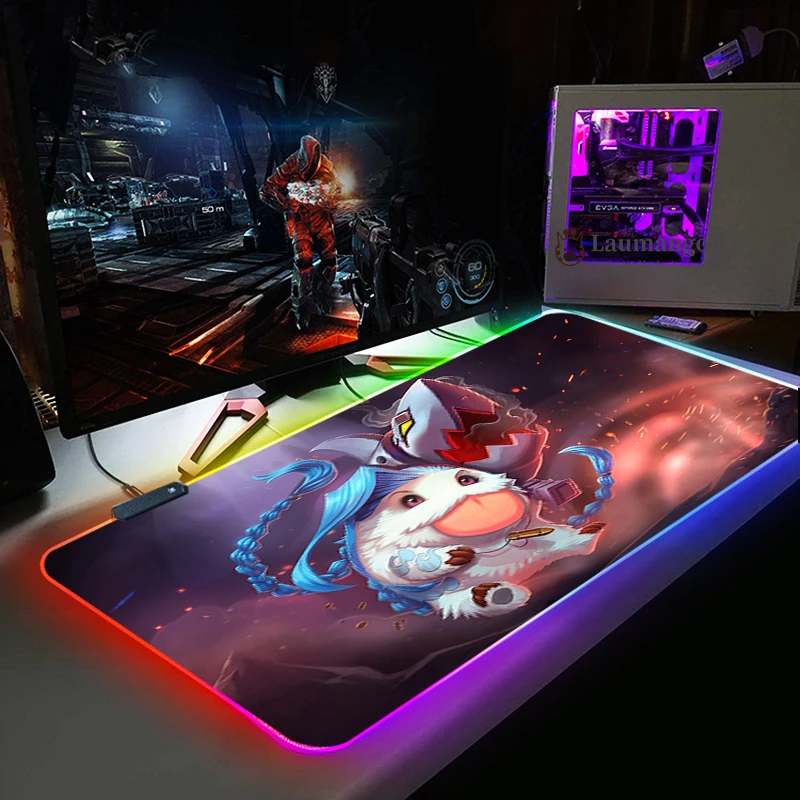 Игровой коврик для мыши LOL с подсветкой, RGB, USB, клавиатура со светодиодный Ной подсветкой, нескользящий коврик, 350*250 800*300 мм