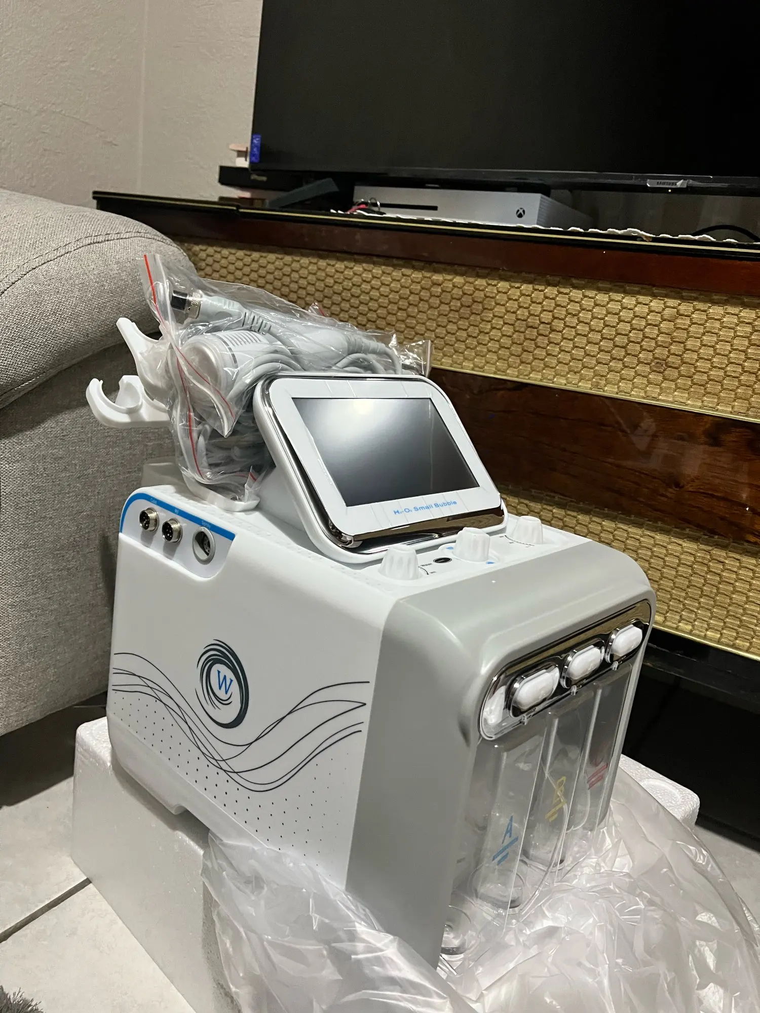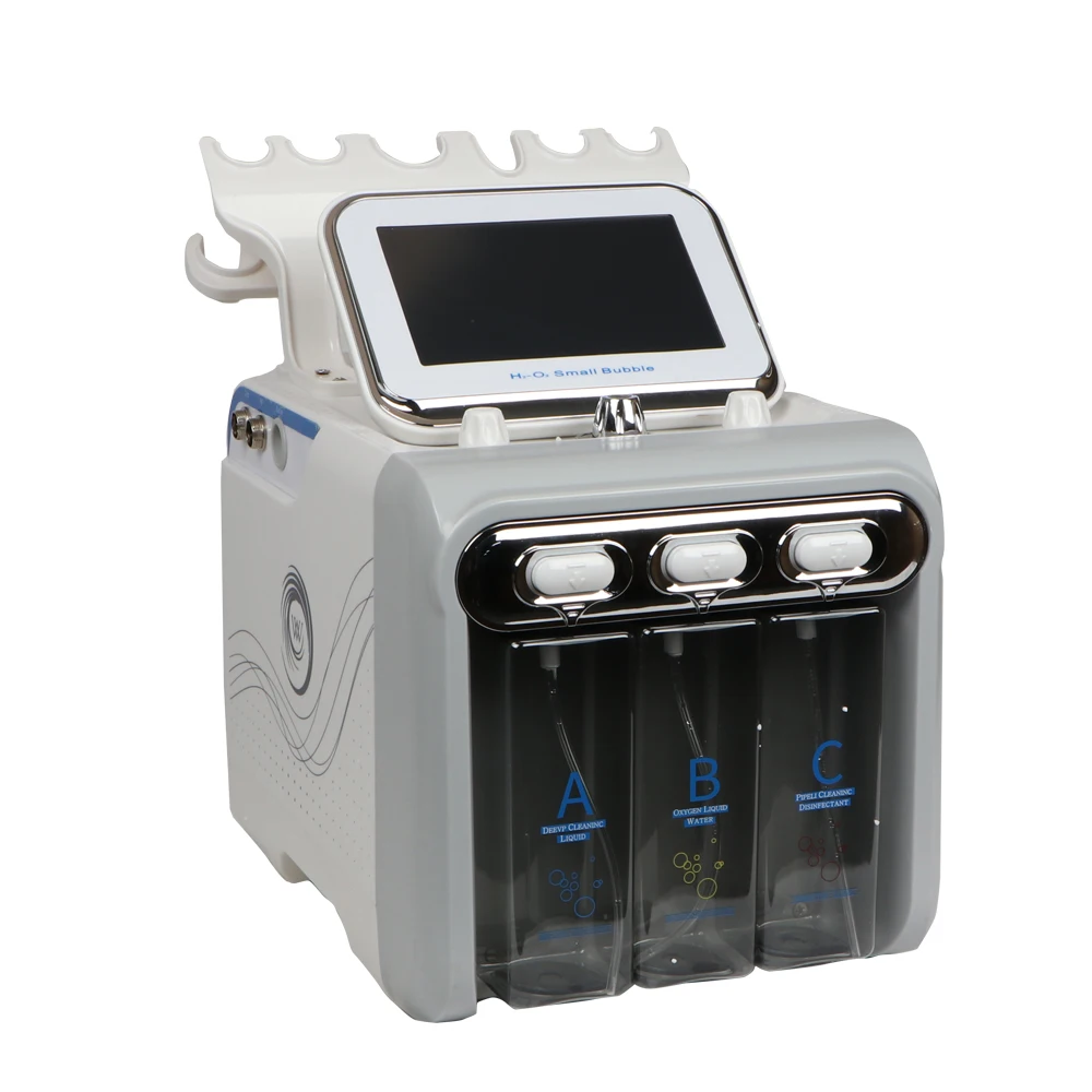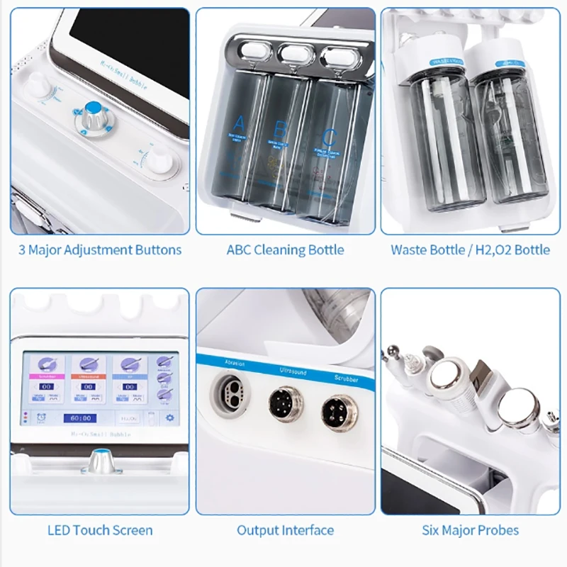 Это новейшая машина для ухода за кожей лица 6 в 1 с помощью генератора h2 o2, которая превращает очищенную воду в воду с ионами водорода и кислорода, поверхность кожи может производить молекулы H2, чтобы молекулы воды быстро проникли в кожу. Для достижения эффекта омоложения и отбеливания кожи, дайте вам свежее лицо! 1. Водный очиститель для лица Aqua Peel: улучшает пятна, тонус, сужает поры, темную кожу, желтоватый цвет, угри, глубокое очищение, тонизирование, повышает эластичность кожи, блеск, нежная кожа и т. д. 2. Кислород водорода (H2O2) распылитель: совмещая с эссенцией, прибор производит окси-водород, который может быстро проникать в дерму через инъекцию высокого давления. 3. Био-микроток: улучшает тонкие линии на глазах, повышает упругость и осветляет глаза 4. Холодный молоток: сужает поры, подтягивает кожу, удаляет морщины, способствует гиперплазии коллагена, устраняет покраснения и чувствительность, И тускнеет темные круги и мешки под глазами. 5. Ультразвук: через 1 миллион до 3 миллионов вибраций, эссенция проникает глубоко в кожу, мягко массирует клетки, способствует метаболизму, повышает жизнестойкость клеток, улучшает кровообращение и лимфатию 6. Вибрационная очистка кожи: отбеливание, омертвевшая кожа, удаление черных точек. Детальный обзор: 1-Aqua пилинг (гидродермабразия, водный кислородный пилинг) 2-высококислородный спрей 3-биполярный микротоковая лифтинг кожи 4-холодный ударный Массажер для подтяжки кожи 5-ультразвуковое глубокое введение 6-ультразвуковая микродермабразия