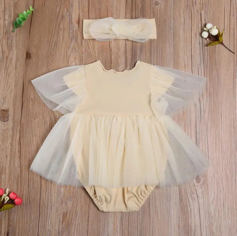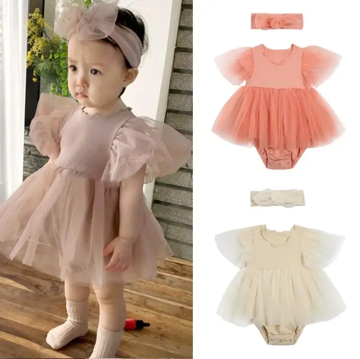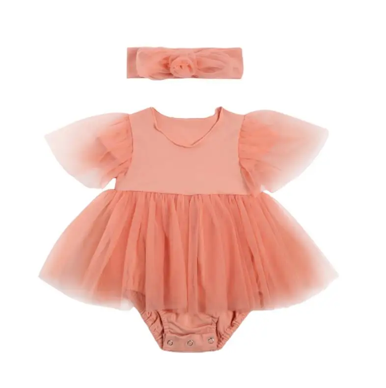 Детский костюм из двух предметов; Комбинезон с короткими рукавами и круглым вырезом; Платье и головной убор