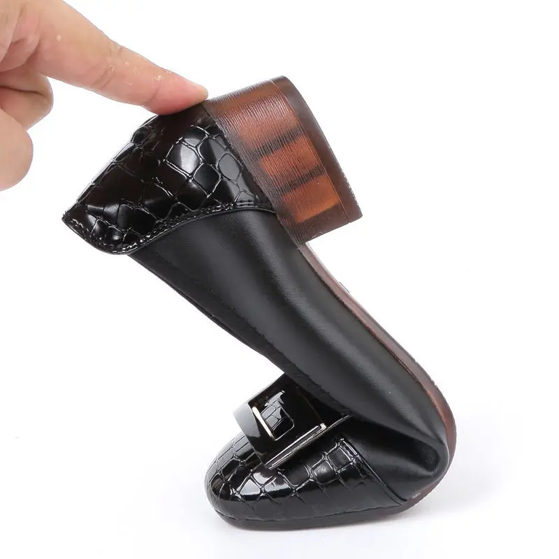 Женские мокасины на низком каблуке OUKAHUI, демисезонные однотонные...