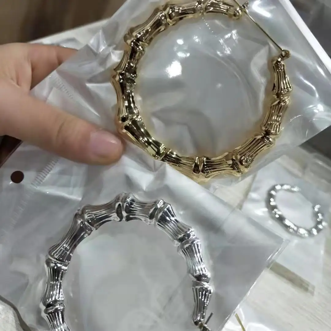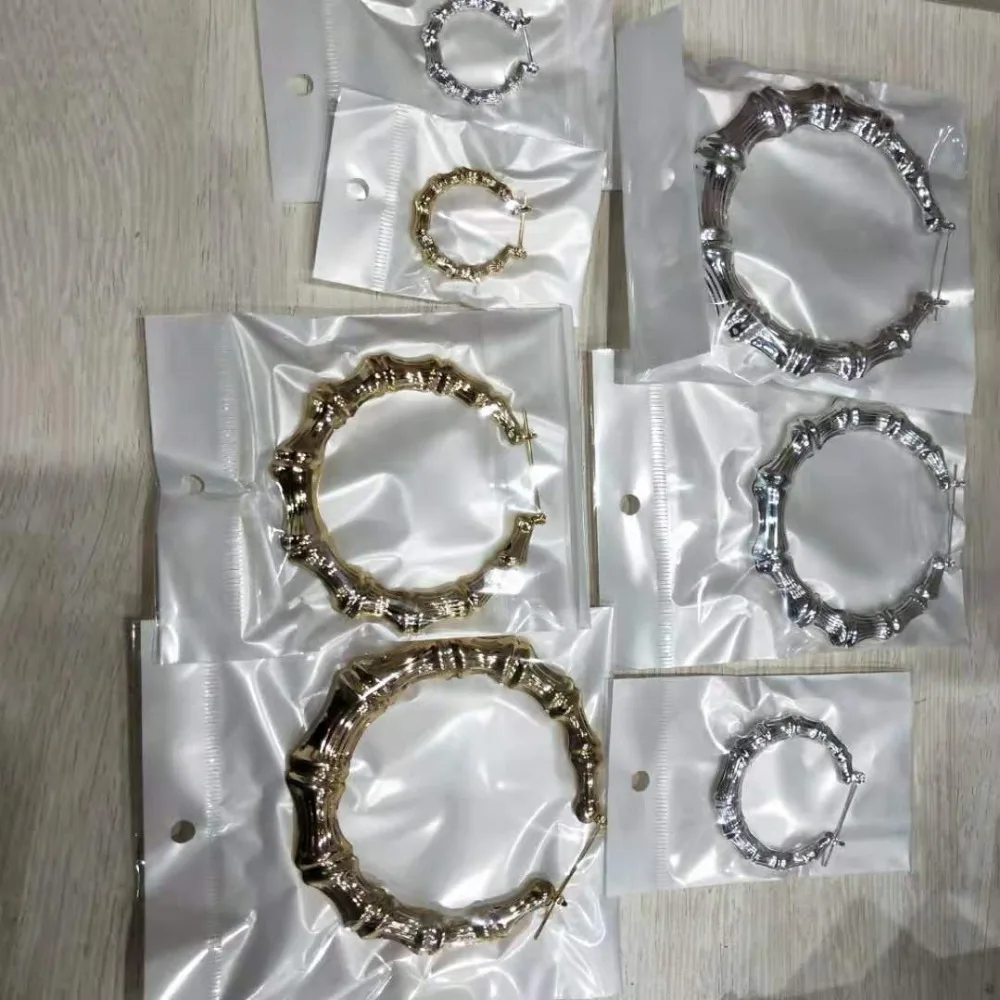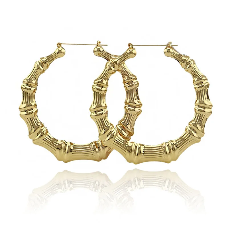 Женские классические украшения, 30-100 мм, золотого и серебряного цвета, бамбук серьги-кольца