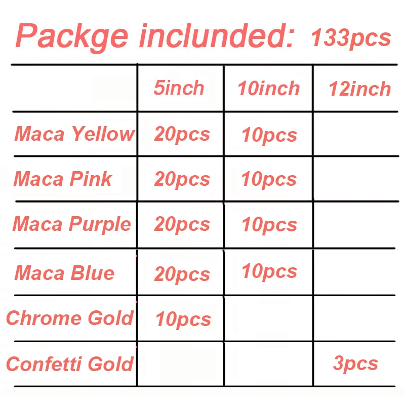 5 дюймовый розовый шар 20 штук 5 дюймов фиолетовый шар 20 шт 5 дюймов blue шар 20 штук 5 дюймов желтый шар 20 штук 5 дюймов хромированная золотистый воздушный шарик в 10 шт. 10 дюймов розовый шар 10 шт 10 дюймов фиолетовый шар 10 шт 10 дюймов синий шар 10 шт 10 дюймов желтый шар 10 шт 12 дюймов конфетти золотистый воздушный шарик в комплект из 3 предметов