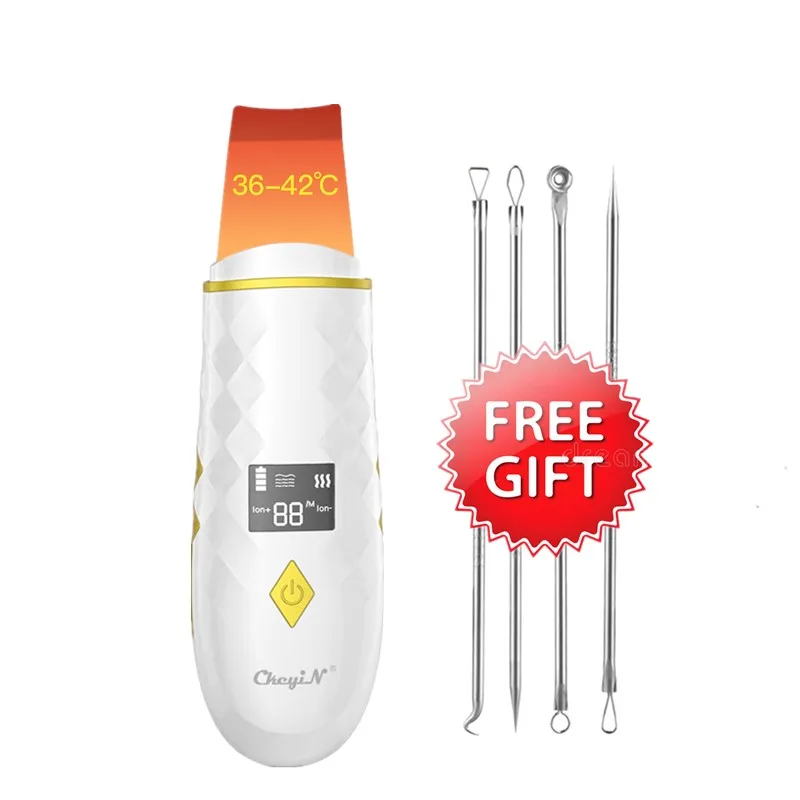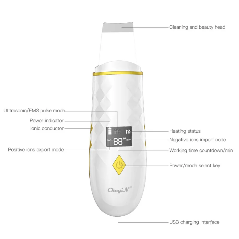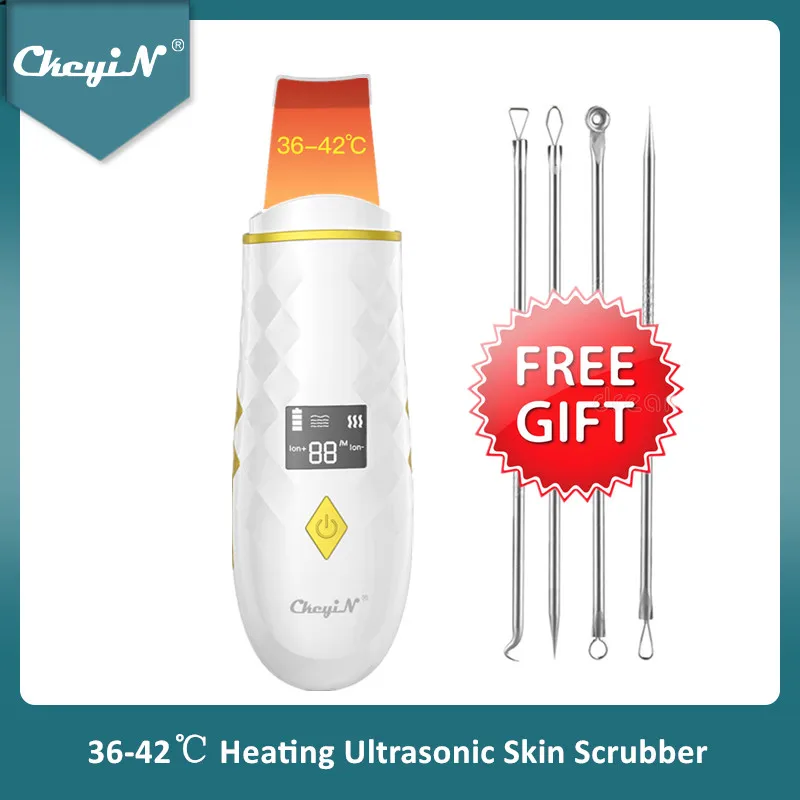 Ультразвуковой аппарат CkeyiN для чистки кожи лица, лопатка для EMS, нагревания и удаления черных точек, глубокое очищение лица, лифтинг, пилинг, лопатка