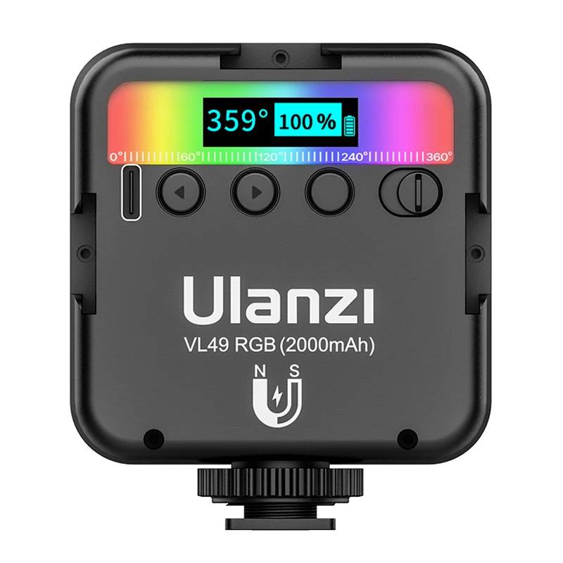 Высокоуровневое изысканное производство 9 ° 100% 01 2000 мАч литиевая батарея 2000 мАч Уланзи VL49 RGB(2000 мАч) Большая емкость Литиевая батарея 02 111111161111 Зарядный порт Type-C 10 Легкая зарядка VL49 RGB (2000 мАч) 01 1/4 винтовое отверстие и холодная Крепление для обуви на дне Работает с штативами Смартфон и камера