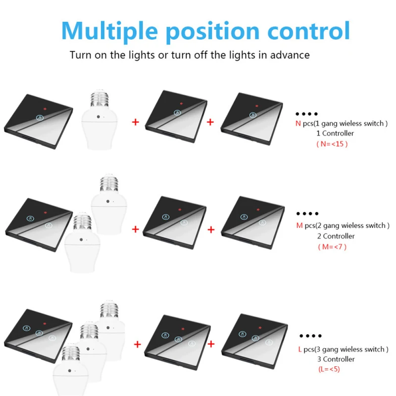 Выключатель светильник, 123 кнопок, беспроводной, сенсорный, 433 МГц, RF пульт дистанционного управления, настенная панель, умный дом, 110 В, 220 В, E26 E27 держатель лампы