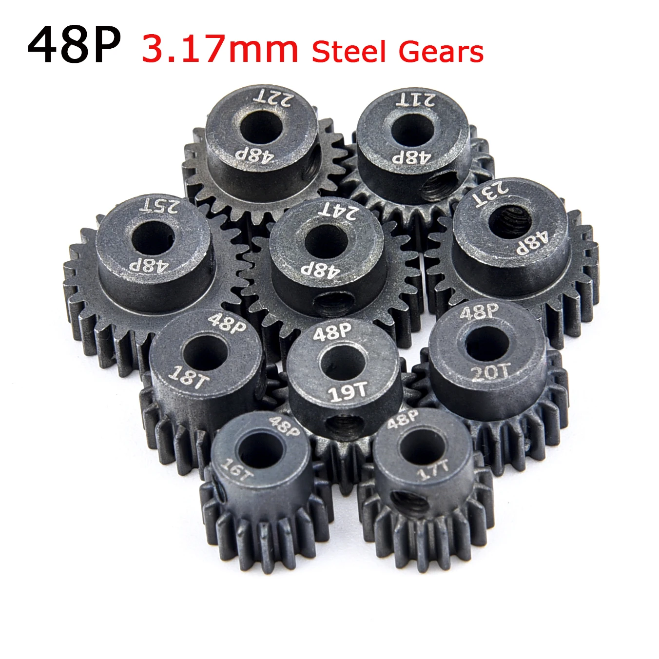 Шестерня двигателя, 48P, 3,17 мм, хромированная сталь, s 16T 17T 18T 19T 20T 21T 22T 24T 25T, Шестерня двигателя s для 110 автомобильного мотора, вал 3,175 мм