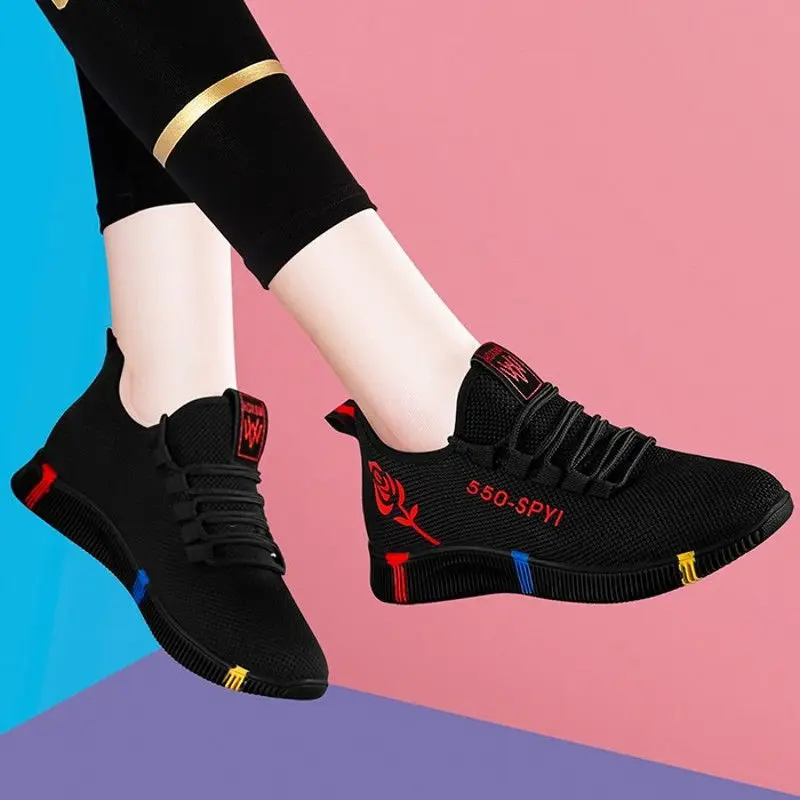 Женские кроссовки на плоской подошве, дышащие сетчатые, модная спортивная удобная повседневная обувь, теннисные туфли