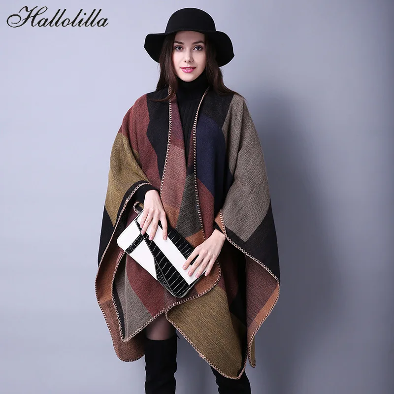 Новинка, модное зимнее Теплое повседневное пончо в клетку и накидки для женщин, шали, палантины, кашемировая Пашмина, женская одежда