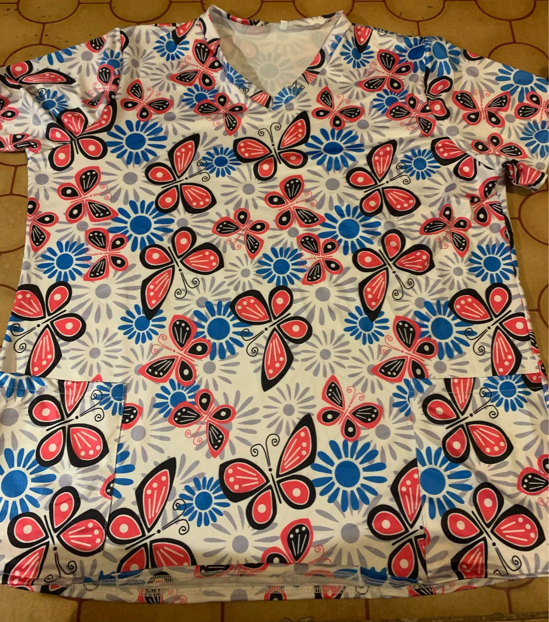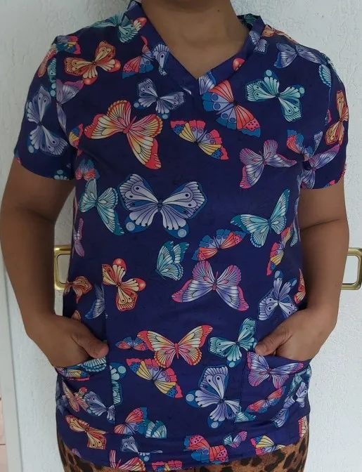 Женская футболка с коротким рукавом и v-образным вырезом Рабочая Одежда Блуза с изображением персонажей из мультфильма "Бабочки" Униформа De медсестра Рабочая Одежда