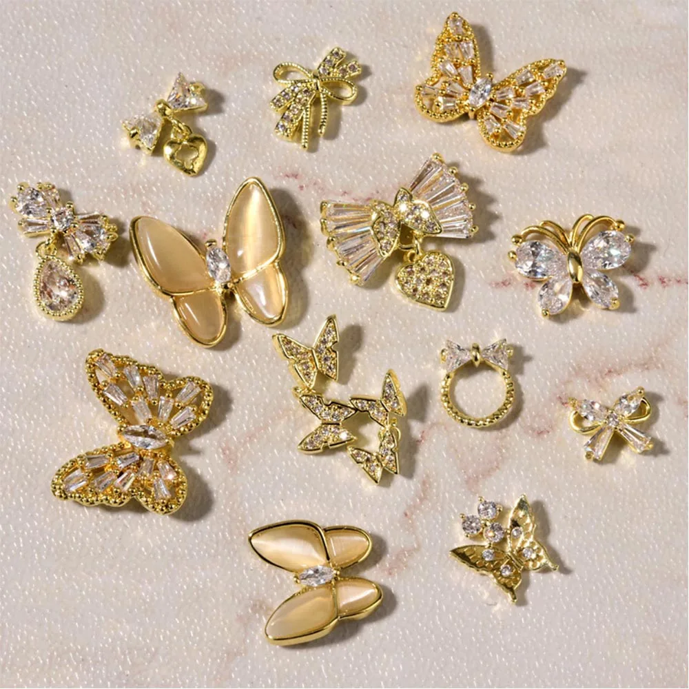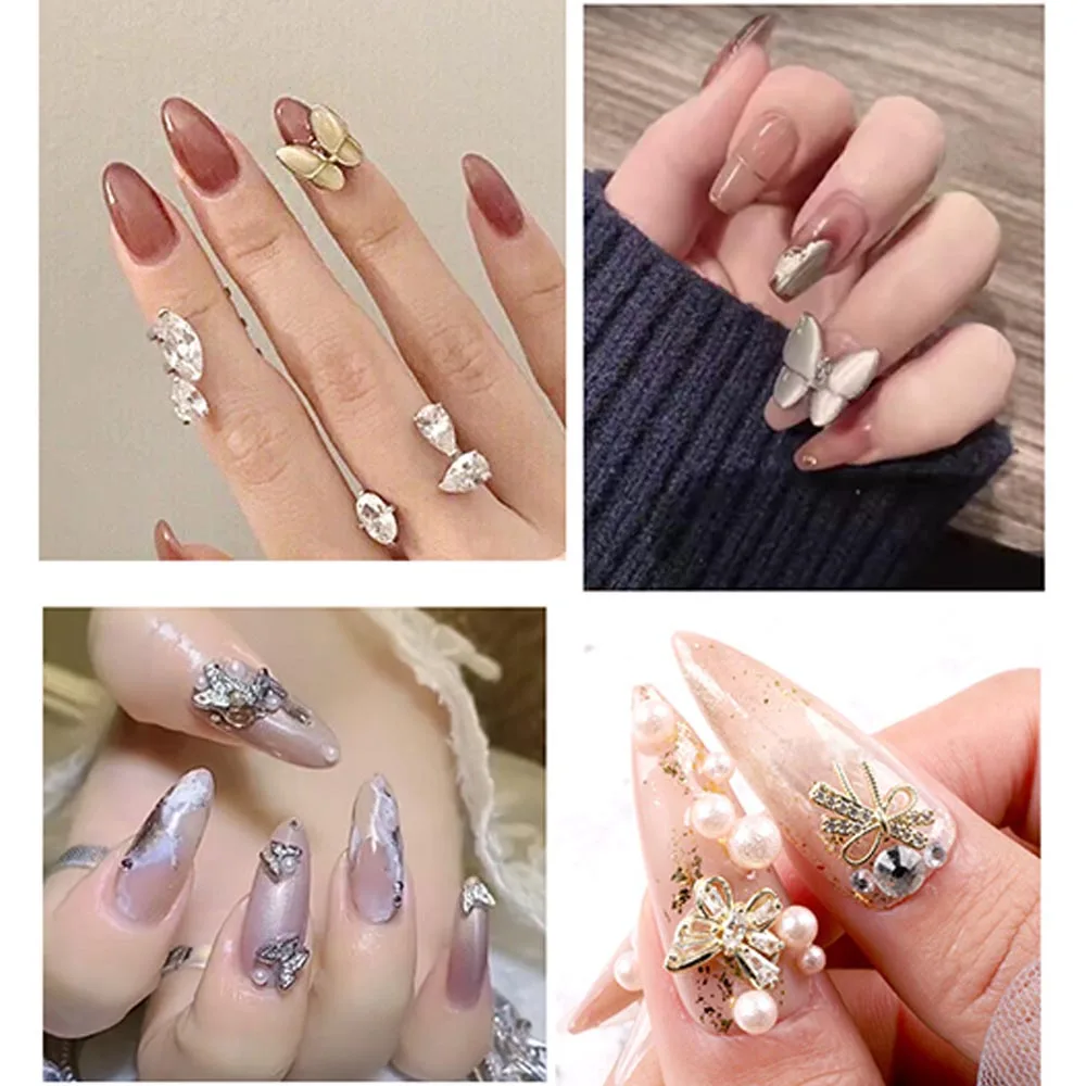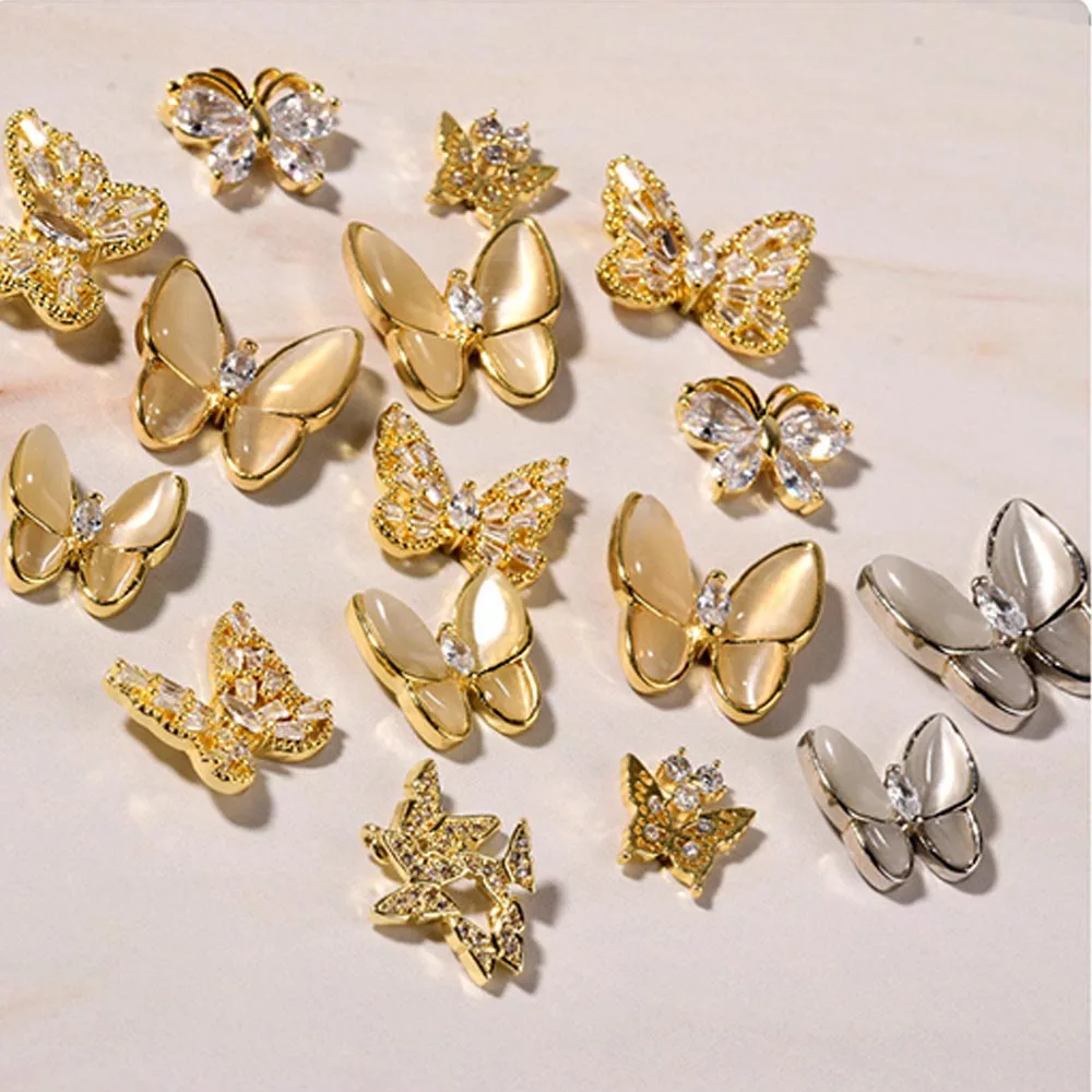 Роскошный блестящий сплав циркона 3D Бабочка Дизайн ногтей украшения кошачий глаз кристалл кулон камень ювелирные изделия Маникюр дизайнерские аксессуары