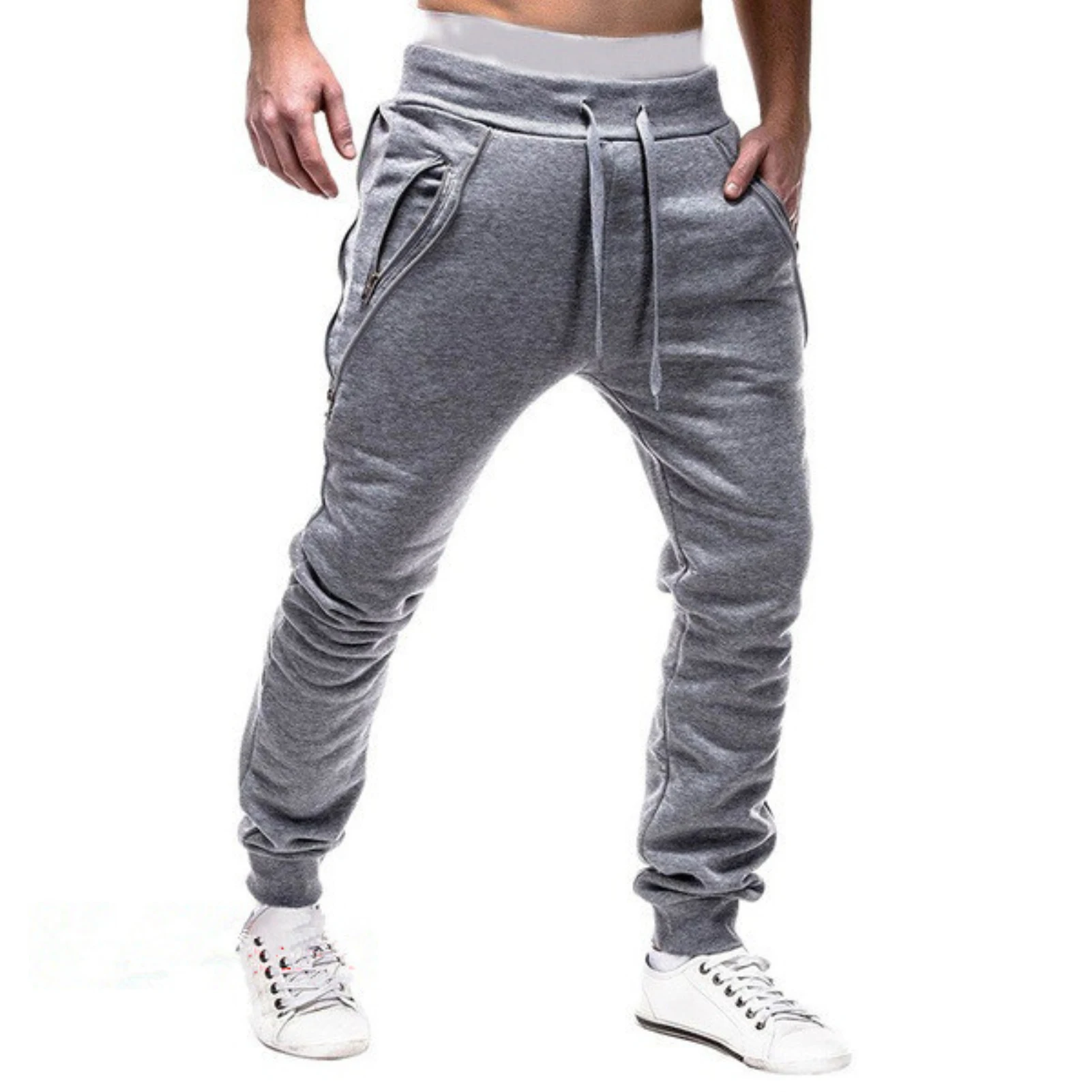 Мужские спортивные брюки на шнурке с карманами на молнии и завязкой на щиколотке, облегающие брюки
