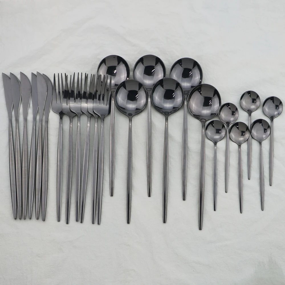 24 шт. золотой набор посуды зеркало Нержавеющая сталь набор посуды Ножи вилка, кофейная ложка набор столового прибора можно мыть в посудомоечной машине набор столовых приборов