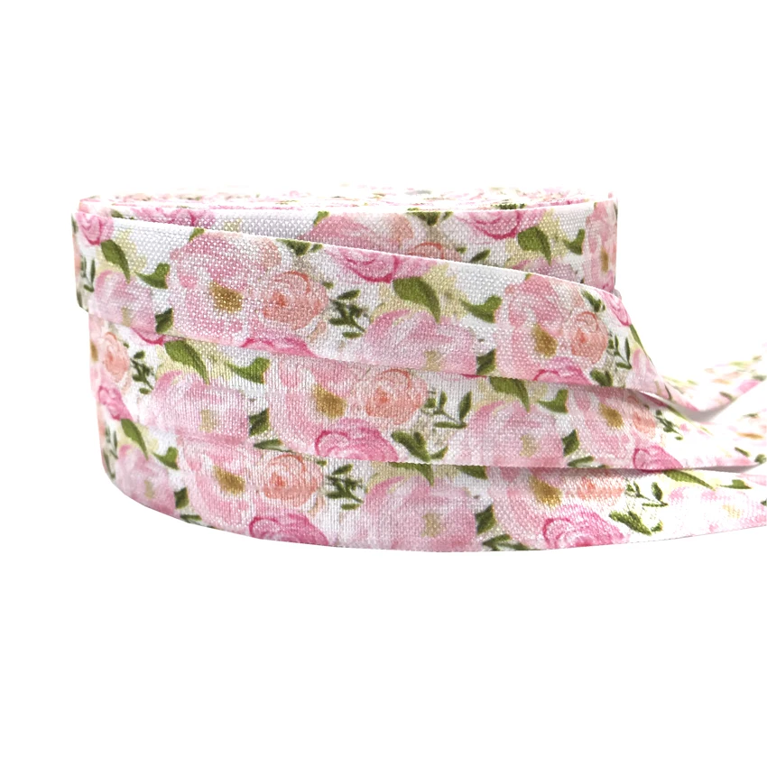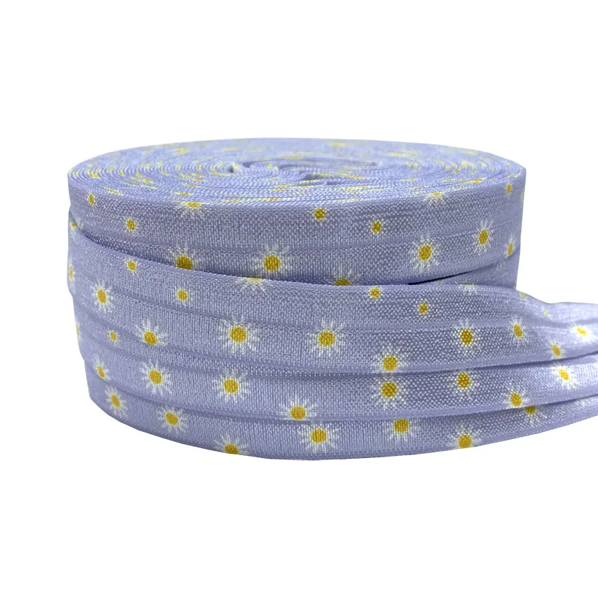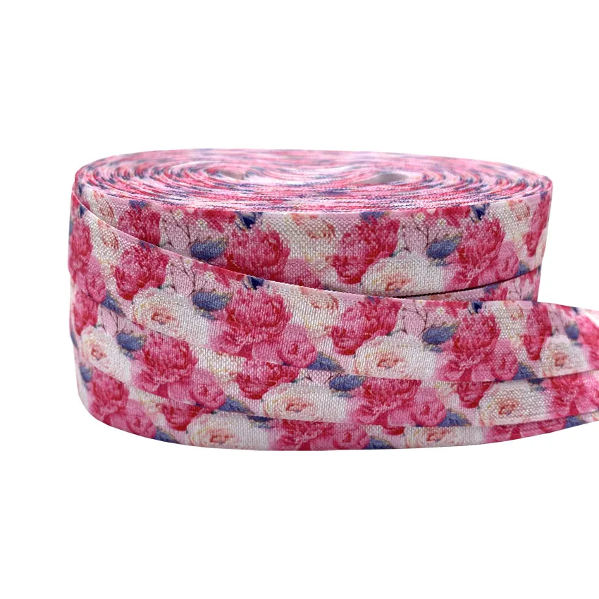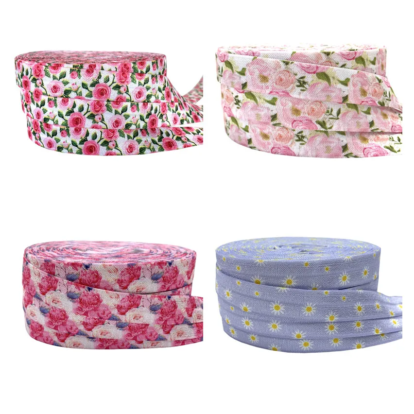10 ярдов 58 "15 мм розы с принтом в виде ромашек на голову эластичная повязка для головы с враг спандекс атласная лента; Повязка для волос; Галстук-бабочка; Платье-пачка DIY Швейные