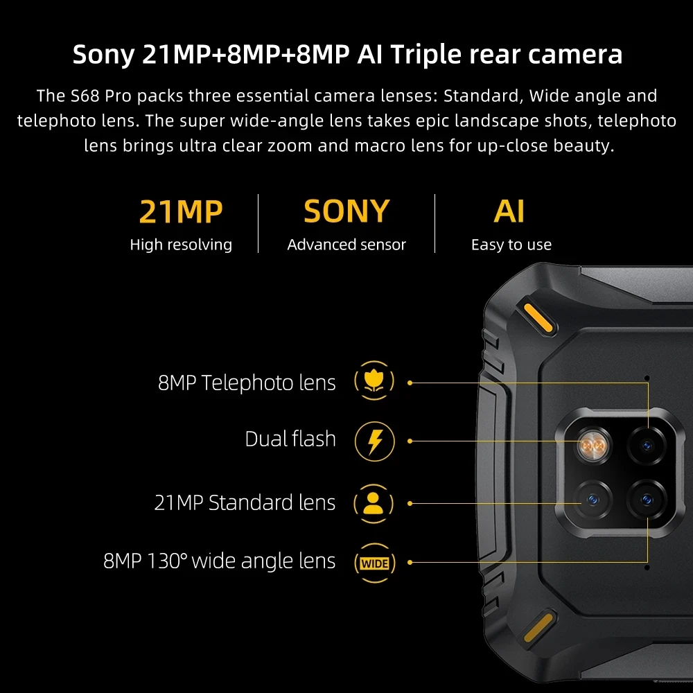 DOOGEE S68 Pro глобальная версия 5,9 дюймов FHD + IP68 Водонепроницаемый 6300 мАч NFC 21MP Тройная задняя камера 6 ГБ 128 ГБ Helio P70 смартфон