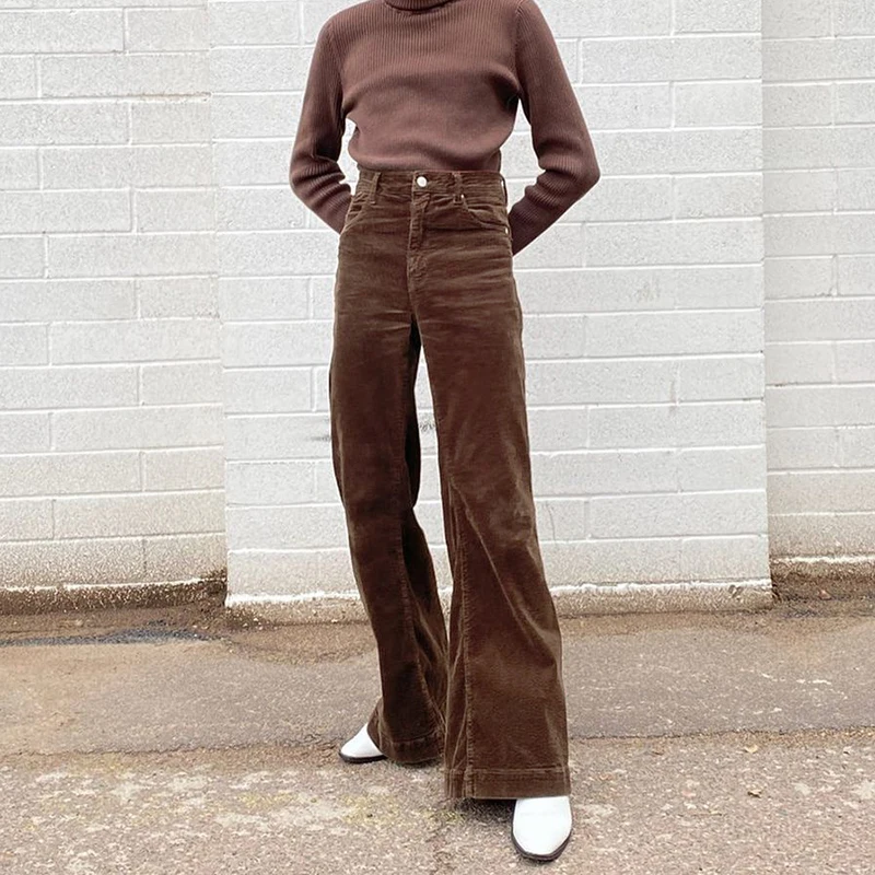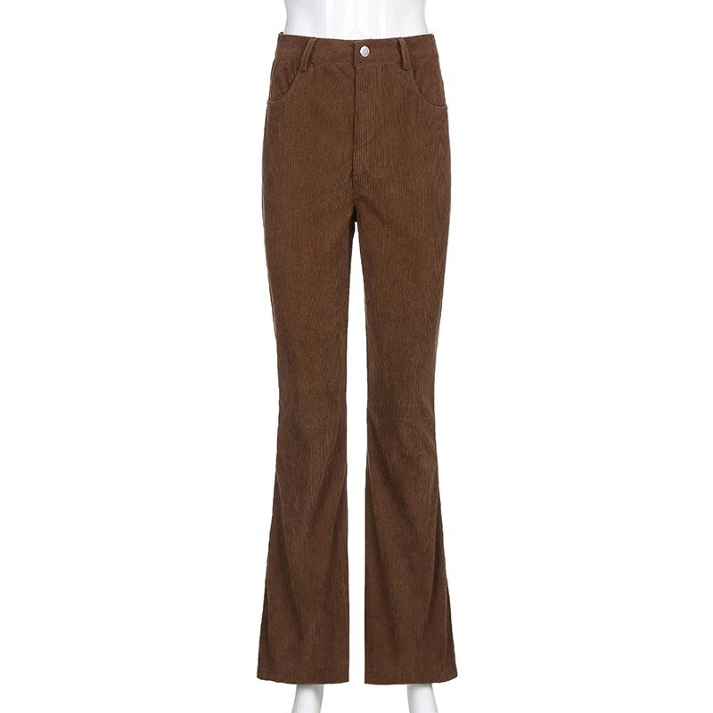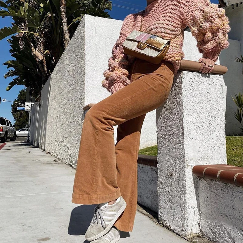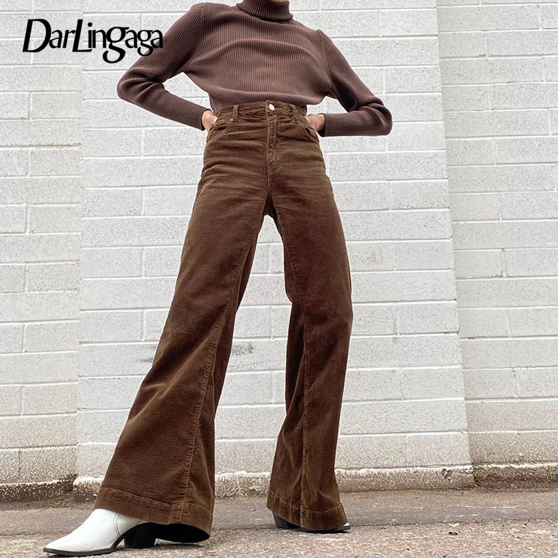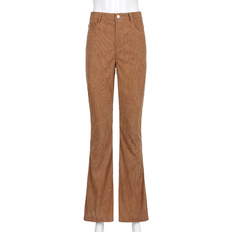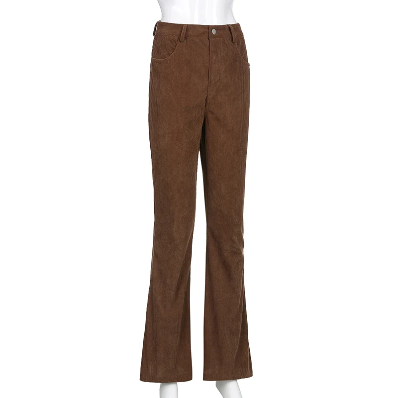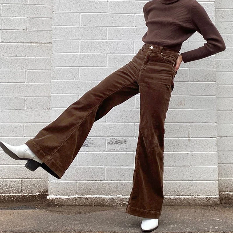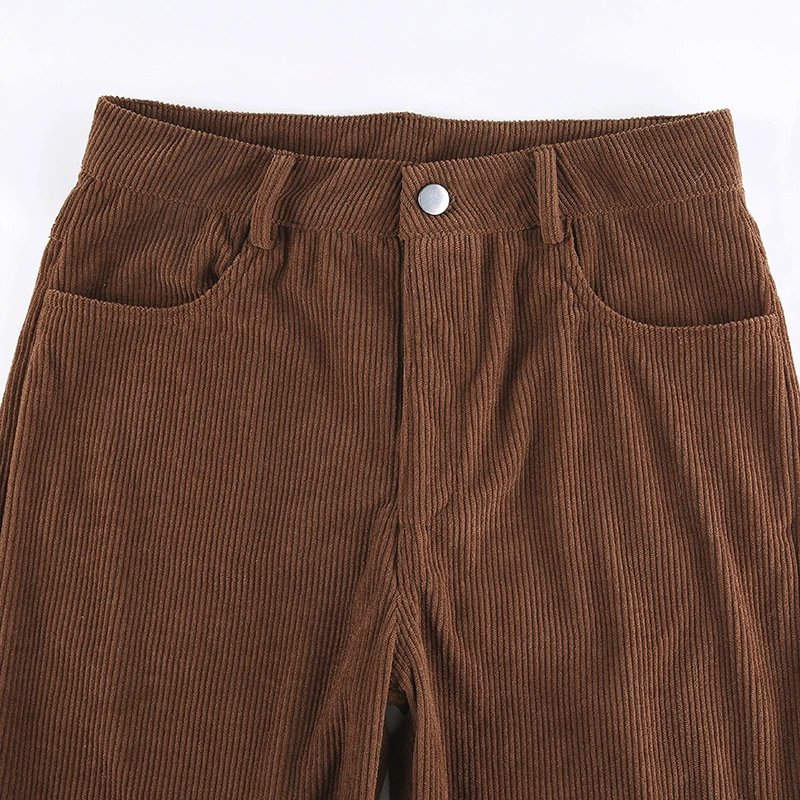 Брюки женские вельветовые с завышенной талией, в стиле Харадзюку